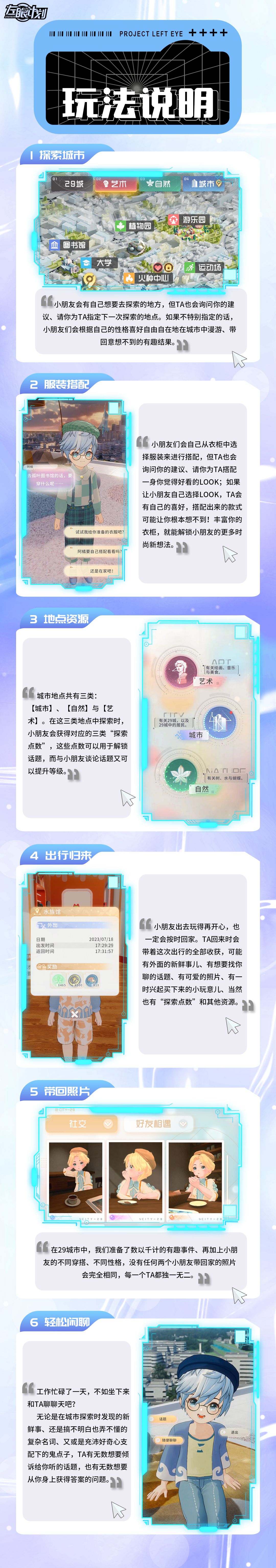 亲爱的热心市民你们好,我是29城市委员会的妮娜! 您是否还在对与左眼如何相处有些困扰?那就让我来向您说明吧!毕竟这是分到我手上的工作啊! ★探索城市 29城市中为小朋友们准备了一套寓教于乐的教育系统,没有集中教学的“学校”,取而代之的是让孩子们在“探索”中获取知识与乐趣。城市的许多地方都专门设计了供小朋友们参观和参与的场景,前往这些地点探索,就能触发许许多多不同的事件、体会许许多多不同的感悟。在这