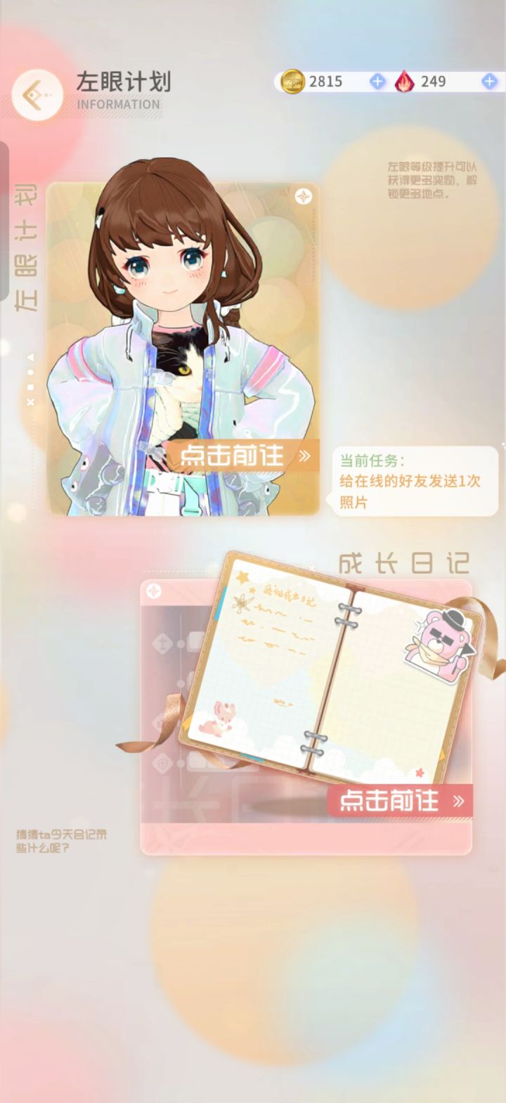 好久没认真玩啦,小薰和卡琳宝宝今天一起去咖啡厅了,让小雨也去了,可惜没碰到。今天活动依旧没更新,左眼你得活着啊,坚持住,不然真的很难过#左眼计划 #游戏日常 #左眼计划日常 #左眼