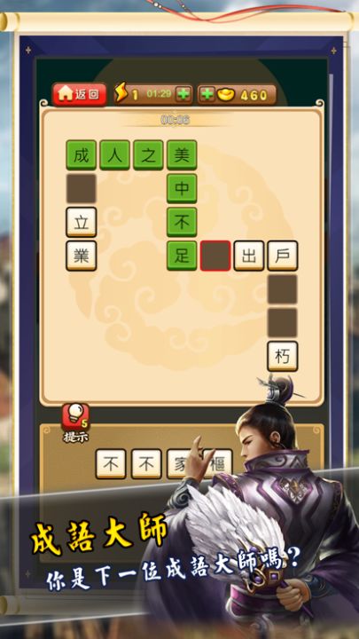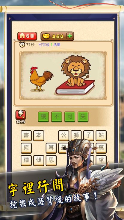 「成語大俠」將帶領您進入一個精彩的成語世界,讓您在玩樂中學習,享受無與倫比的遊戲體驗。