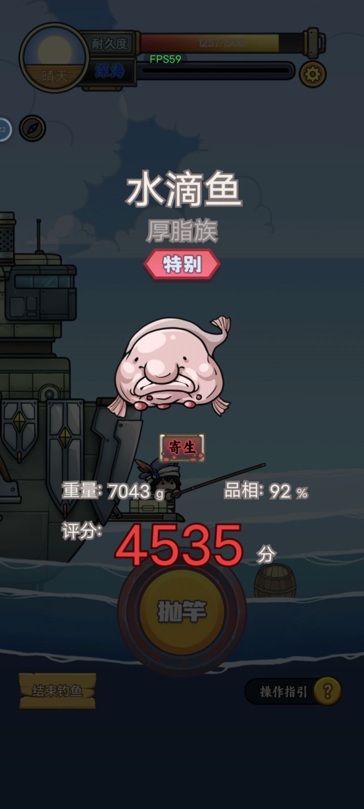 选点开船移动时可以钓鱼的,部分特殊鱼在风暴和幽灵船以及命运转盘里选。开鱼库的五个广告必看,漂浮物有每日上限,随机出材料和形状无关大概率还是木头。不管是大鱼小鱼都可以多指快速连点,普通叉上高级大鱼必备技巧。稀有小鱼有概率甩头先单指试探太快的就不要连点了。钓鱼推荐普通竿和普通饵刷材料,等有钙化鱼竿拿高级饵刷材料。熟练以后用珊瑚杆配口味饵刷饲料,海藻建议做大鱼饵。之后就可以拿钙化和精准竿去深