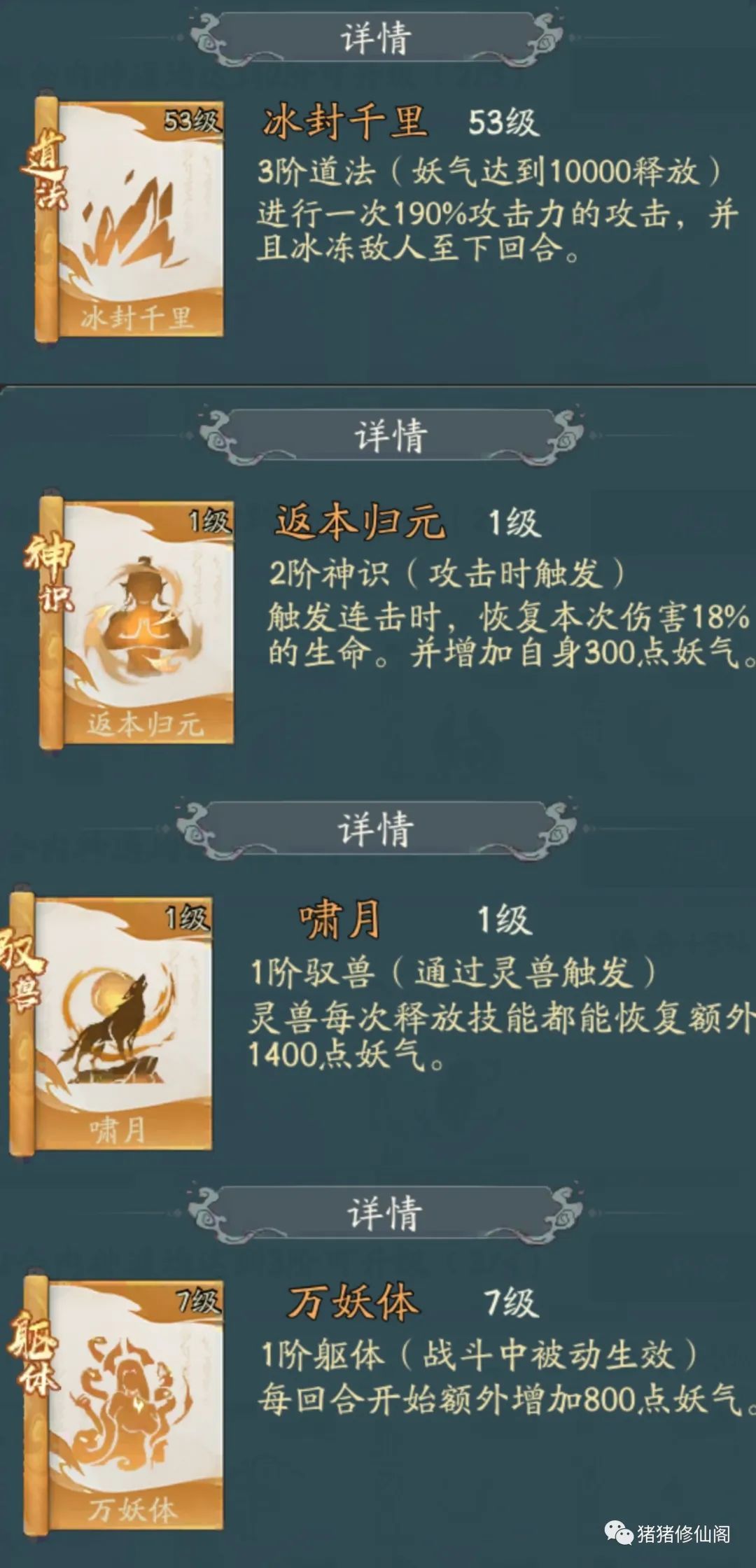 在游戏中,道友们是不是常常选择强势且主流流派玩。而猪猪可能更喜欢探索一些不太常见的冷门流派,可能会带来分歧,可以加猪猪好友探讨。今天猪猪给大家介绍新的一套冷门好玩的流派——纯连击冰封流! 搭配思路 纯连冰封流主要的玩法是通过连击获得妖气释放冰封千里,通过连击可以不断获得妖气并且配合冰封的冰冻1回合,可以达到无限冰封的效果。 战斗属性【连击】拉满,装备全部选择【连击】属性,适当可以拉一点敏捷。战斗抗