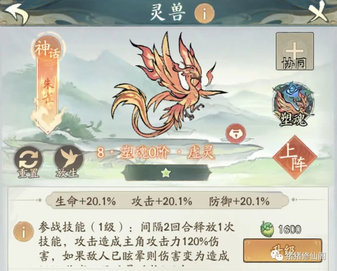 仙友们,今天猪猪给大家推荐一个最新的流派——朱雀燃烧流,伤害高又好玩,快来看看吧! 01朱雀简介 【参战技能】:间隔2回合释放1次技能,攻击造成主角攻击力120%伤害,如果敌人已眩晕则伤害变为造成180%伤害,且眩晕延长1回合; 【灵兽被动】:强化灵兽、威力、强化击晕、弱化灵兽; 【击晕燃烧流】 该流派主一个控制和依靠朱雀和神通的效果伤害,朱雀的技能在敌人眩晕的时候,收益最大,即可以多打60%的伤