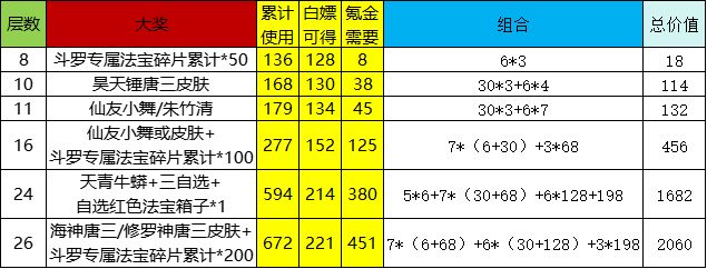 大家好,我是你们的老朋友,雪玉山16服的霸王茶几,唐门法宝再临,茶几再次献上攻略! 首先给大家带来了实际抽取效果,绝不玩儿虚的! 本次活动仙玉+广告+任务累计可以白嫖130次抽奖 根据个人运气看是否可以上8层白嫖自选法宝! 茶几这次非常的黑,比上次活动要黑很多。 1-17层每次抽取消耗材料1个:平均每层17.1个。18-25层每次抽取消耗材料2个:平均每层41.5个。26层每次抽取消耗材料3个,当