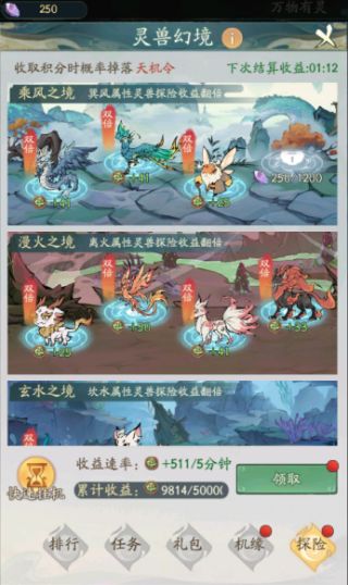 一.活动 灵兽幻境 (注意每个位置放对应属性的宠物,积分加倍,如果氪度不够,灵兽又少,不要解锁太多坑位,留着快速挂机收益更大) 精怪历练 (前三天积累的精怪符,在活动期间可以全部用掉,计算好有驱灵符,还有多少精怪,算好配比去使用,避免驱灵符没用完就没精怪,或者驱灵符用完还很多精怪没使用) 神通灌顶 (重中之重,0氪尽量多抽一次是一次,小氪,前期的玉不要乱花,用在这次活动,抽满720次拿自选神通