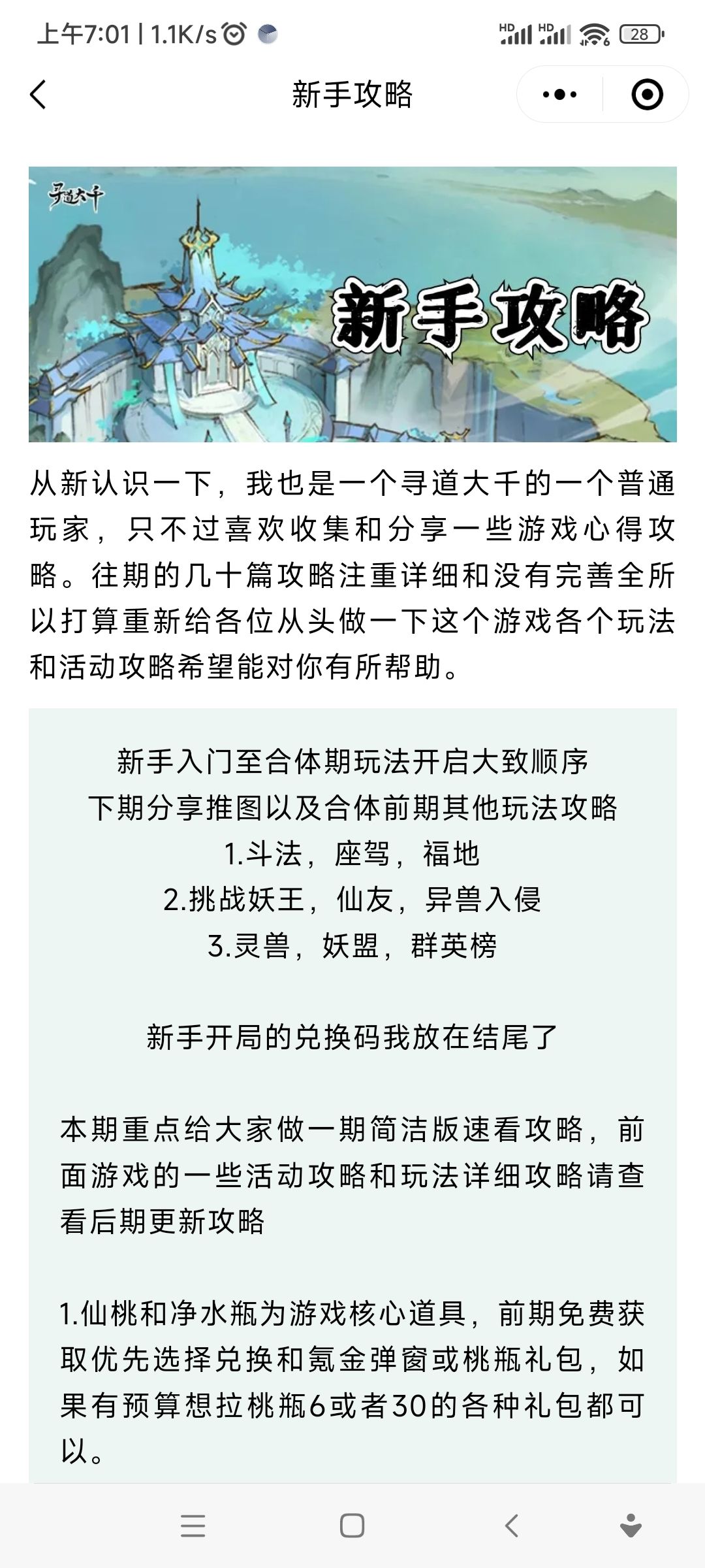 从新认识一下,我也是一个寻道大千的一个普通玩家,只不过喜欢收集和分享一些游戏心得攻略。往期的几十篇攻略注重详细和没有完善全所以打算重新给各位从头做一下这个游戏各个玩法和活动攻略希望能对你有所帮助。