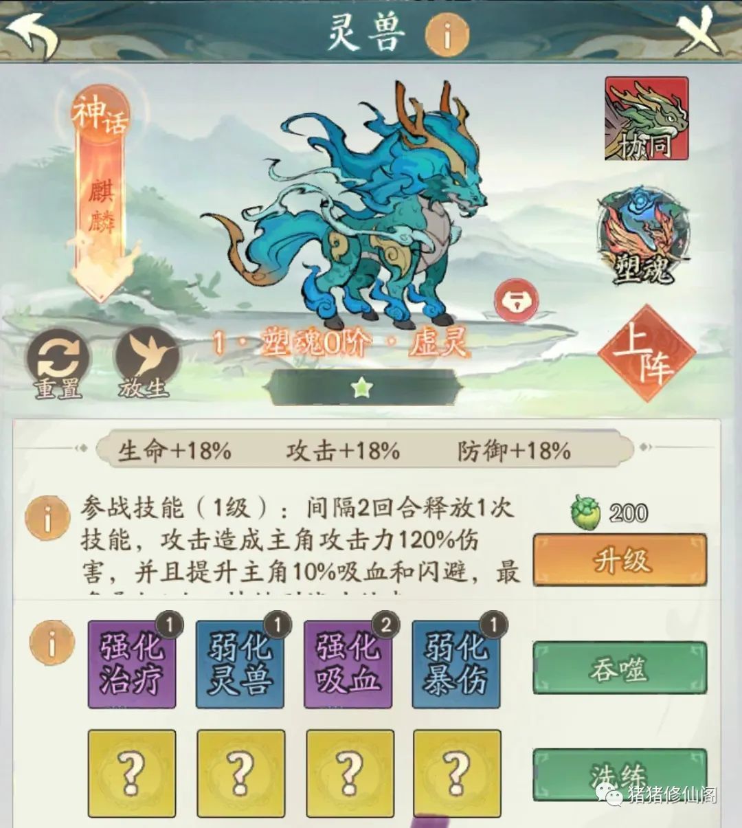 红宠中青龙、朱雀在现阶段版本中深受大家喜爱,玩反击流的玩家对白虎也会青睐,而今天猪猪给大家带来的是红宠中的冷门神话灵兽——麒麟的流派推荐,只要我们搭配得当,也可以极限冲榜哦!下面,我们通过【灵兽参战技能】【灵兽被动】【精怪】【血脉】【神通】来看看麒麟的搭配吧! 灵兽 【灵兽参战技能】:间隔2回合释放1次技能,攻击造成主角攻击力120%伤害,并提升主角10%吸血和闪避,最多叠加3次,持续到战斗结束;