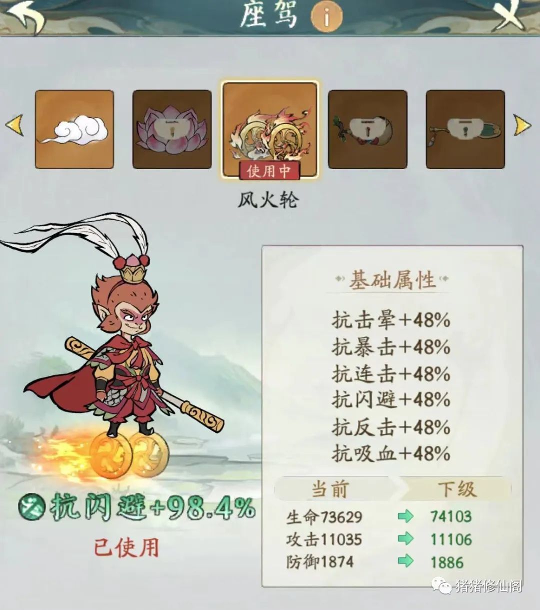 道友们,今天猪猪带来修仙座驾详细版攻略!无论是新手小白还是老手仙家,座驾是我们修仙升级的必须工具,可以让我们的冒险之路事半功倍! 座驾介绍 完成19个主线任务解锁座驾,装备座驾可提供给角色基础属性和战斗抗性,每升级1级座驾提升角色的生命、攻击和防御。升阶座驾提升战斗抗性。作为游戏里战斗抗性提升最大的元素,座驾在对战中起到非常重要的作用,而且我们需要知道所有座驾共享养成等级,但是指定的抗性效果不同,