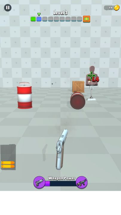 Put the crosshair on the targets, shoot the targets, shoot the upgrades before they expire, earn money, upgrade your weapon, hit all the target waves and win the game!