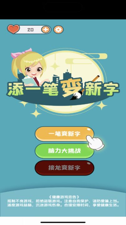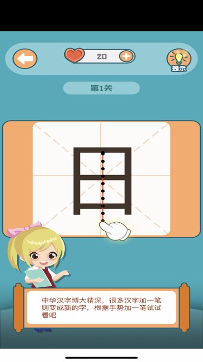 在关卡的文字中添加一笔,变成全新的汉字即可过关,随着游戏的进程难度会逐渐增加,挑战玩家对汉字的了解程度,玩起来轻松解压也富有成就感,你能挑战几关呢?