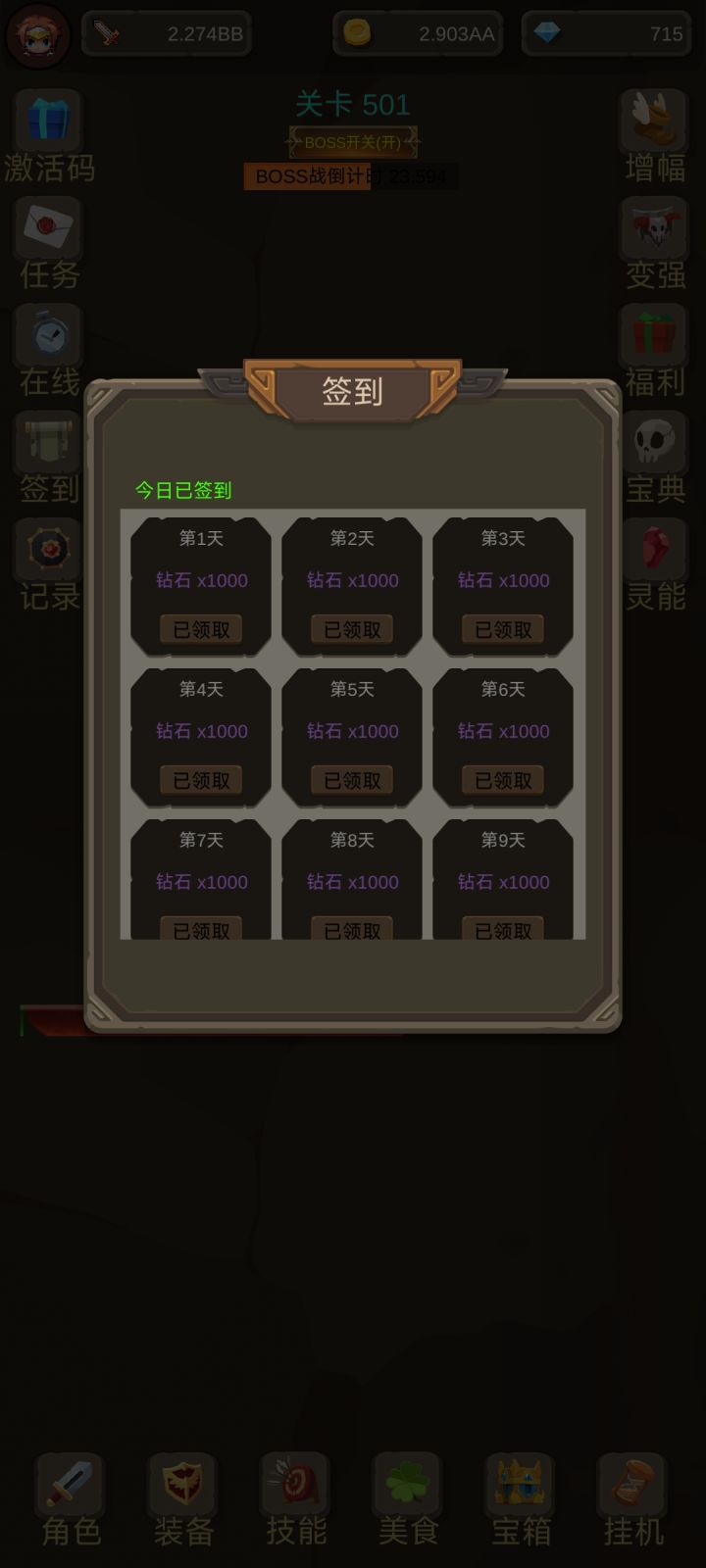 建议奖励一天天递增,多玩点花样