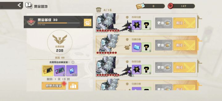 其实刚才我的刷新卷就没了,但我想起来每天都能领几张,刚好就刷掉了一个八级悬赏,但是我一天都要用掉十几张,这个券我原本以前是有很多卷的,随着我这个悬赏等级越打越高,我打不过的悬赏越来越多,这个消耗量也会越来越高