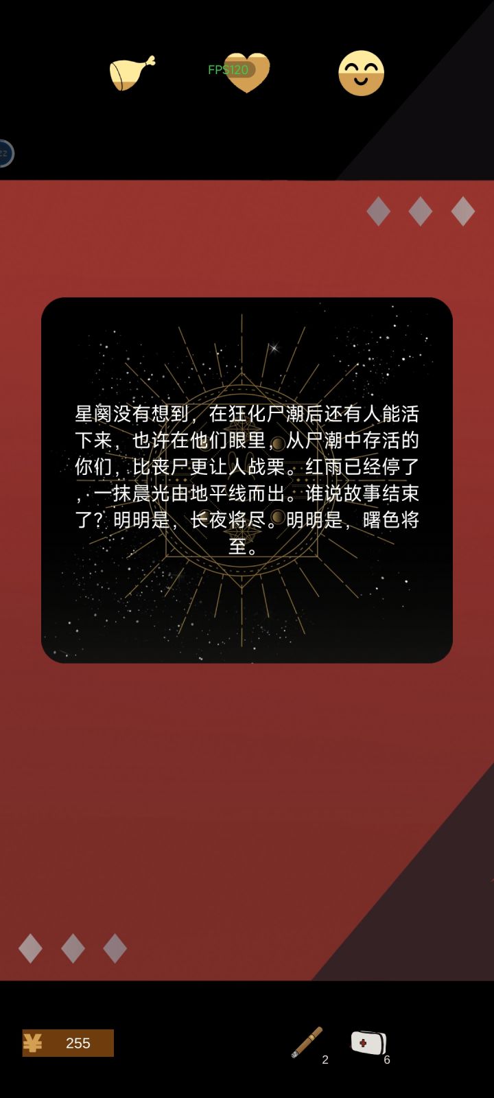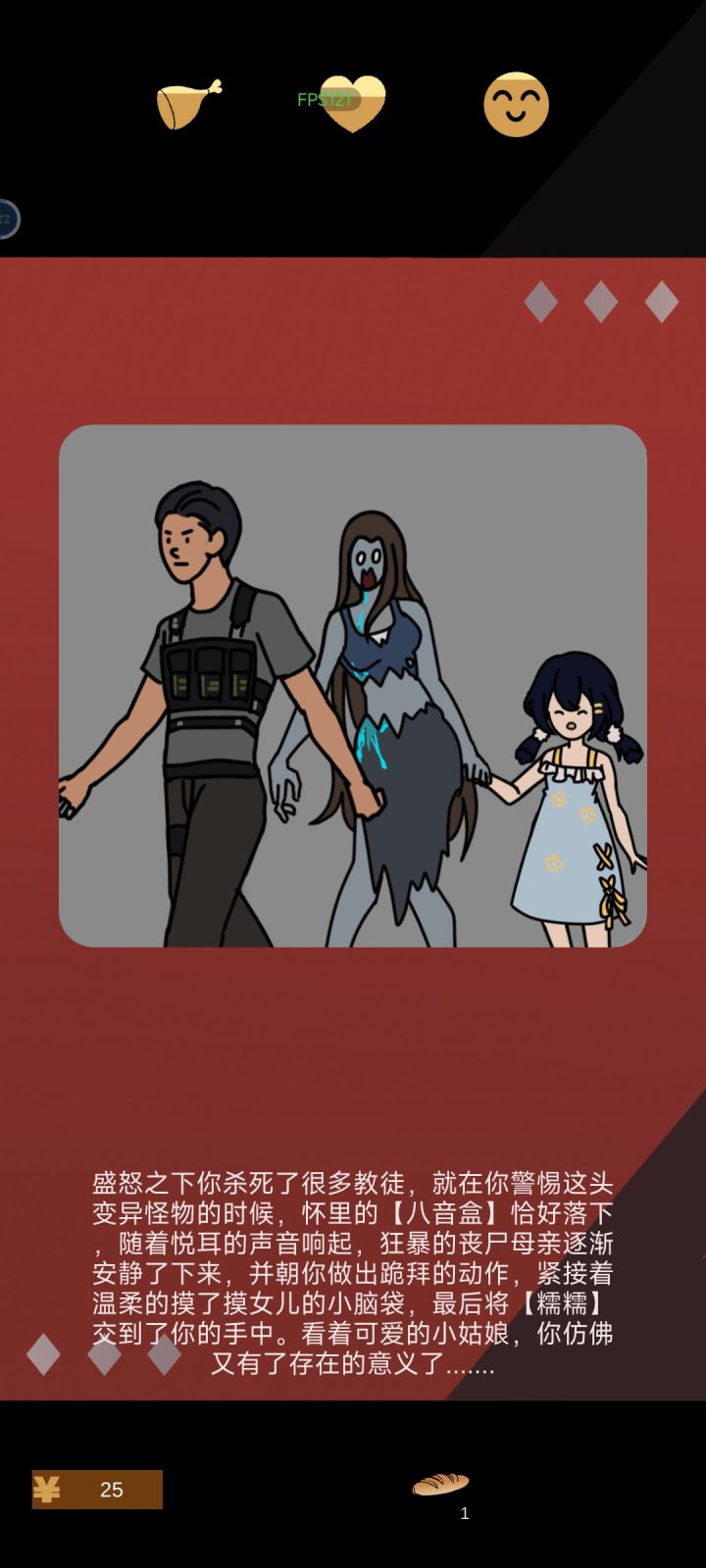 第一个就是猫女,猫女这个我也是一头雾水,是概率出现,然后顶掉半拉邻居的事件,然后就是空投,空投事件建议去拿,没拿到减心情,拿到了加心情还有食物,还有老人和门前老人,前者救人后者不管就行,然后是女王那里,女王这里与前面来说就会很困难,很容易死,这里会有一个蛋糕事件,一种是吃了获得异常状态,增加饱食度,一种是不吃被女王打(扣心情)有意思的是,这里的蛋糕有概率没问题,女王也有概率不打你,所以这里可以看需求,饱食不够就吃,吃完异常打医疗包就行。