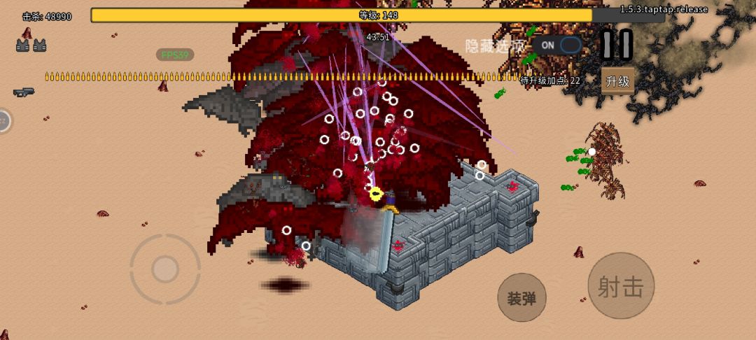 如图,我的机炮等级低的可怜,教程适合新手玩家开荒。开局拿步枪。 优先点出双、三枪管,烈性弹,电磁弹,击退,射速,换弹。 加枪械伤害。 中期开始优先补充副武器剑刀气,副枪。这个时候优先升级副武器所有属性,刀剑可以防御远程怪打基地。 接下来就开始无脑升级属性,全部拿完。后面的就围绕基地跑图割草,注意用刀剑防御远程怪打基地就行。