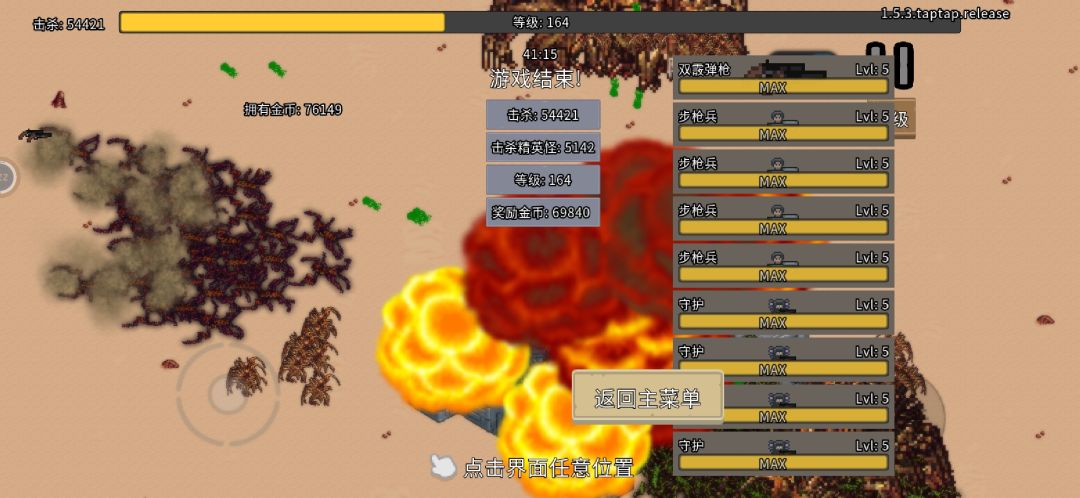 开始游戏,建议优先买齐雇佣兵,守卫和炮台,不需要升级,每次游戏雇佣兵和守卫都可以获得经验,前期可用步枪攒钱,然后买火箭筒,火箭筒优先升级换弹速度,不需要升级弹夹,练度够了基本可以通完全部四关,剩下的就是无线挂机升级武器一类。