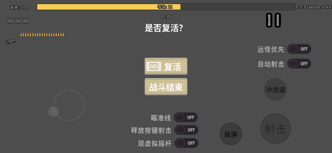 正常应该是强行剧情杀的,可以看到我明明有还三个甲结果还是挂了,不过只要复活再把剩下的怪打完就可以了。为了实验看视频刷了三管+双电击双爆炸的步枪,12.5单发伤害,多点了击退和移速,拉扯一会就把最后一波怪打完了😋