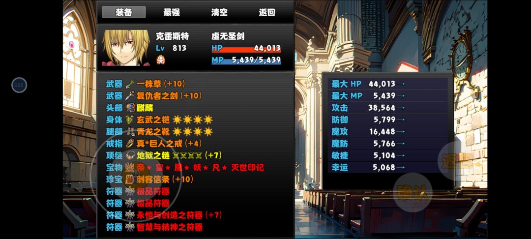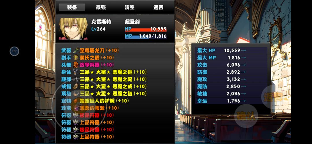 游戏优点:游戏内爆率非常友好,可惜没保底,可能还会有非常非的情况(比如我,110+次没有爆出一个猪之歌),整体游戏内容完善,有任何问题都可以和群主直接反馈 游戏流程:开局领礼包,大概有750金币,去刷史莱姆刷够1000金币买一个史莱姆,之后猛推主线(在此阶段不推荐专门刷取装备)救出公主,之后去武斗之城去打上面那一排拿去一套装备(打前记得保存),打完第一排后直接打右下角拿E级竞技场挑战券,去初始地打
