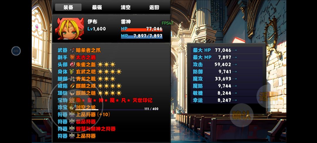 光猫带加队友地属性伤害的石头可以让元素多点伤害,单纯奶量就带光明女神。目前加队友伤害好像只有光和地,模仿师骷髅指环,新副本物理伤害珠子和巨人护腕都行,这里就不多放图了,帝女可以速度寒冰剑增伤技能打辅助,也可以带刺客信条双诛仙,更多的是辅助作用,输出没前面几位高就不放图了。