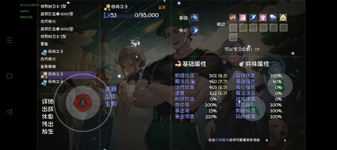 战斗结束后如果有对友死亡怎么办,可以打开菜单点技能查看点精灵技能就可以复活了,史莱姆娘的技能也可以点