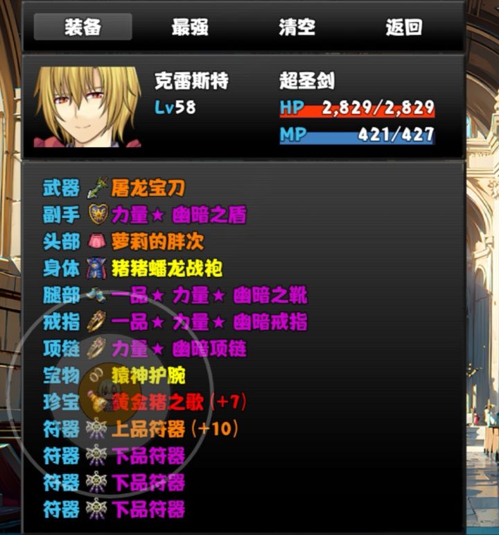 本来不想做这个攻略的,想了想还是做一个吧港口上去右边是恶魔城(四个卷轴都在右手上下两个楼梯,吸血书没必要刷),那里面掉死神权杖(金色)跟新宠物伊丽莎白(优先多打几次死神把她升到五十级),一直往上是暗神殿(掉黄金史莱姆),暗神殿下面一个图掉胖次,往上再右拐就是猪猪农场推荐先去刷恶魔城,然后再去农场或者神殿,最后再去刷胖次装备:个人推荐奶妈全一品魔力,猿神,加魔树之心,其他三个就是胖次,猪猪甲,