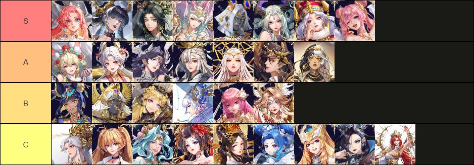纯主观。直接上图,同分值不分前后顺序,但是赫拉,洛基和龙女是我心中的TOP3。 赏析环节 S 赫拉:白月光,优雅且美丽动人,没什么好说的,你游的顶点了。 洛基:神秘又危险的女人,侧开叉到大腿根的礼服,i了。 伏羲:很有东方神明的知性美,温柔大姐姐。 龙女:白毛龙女,秒了。 荷鲁斯:黑皮白毛且红唇,还是会画的。 美杜莎:嗨丝坐姿,无需多言。 奥丁:异瞳,神王,香草。 丘比特:卡哇伊๑ŐεŐ๑。 A 妲