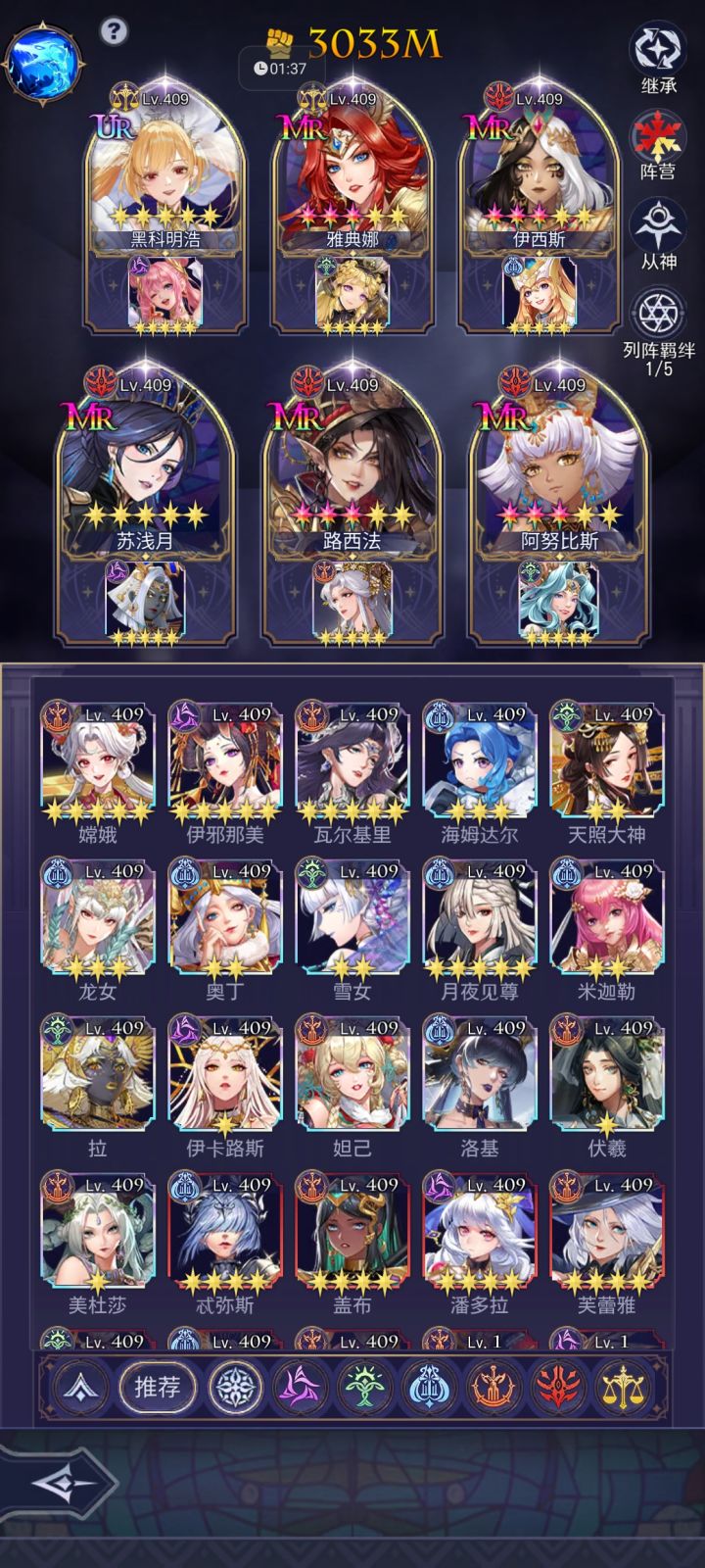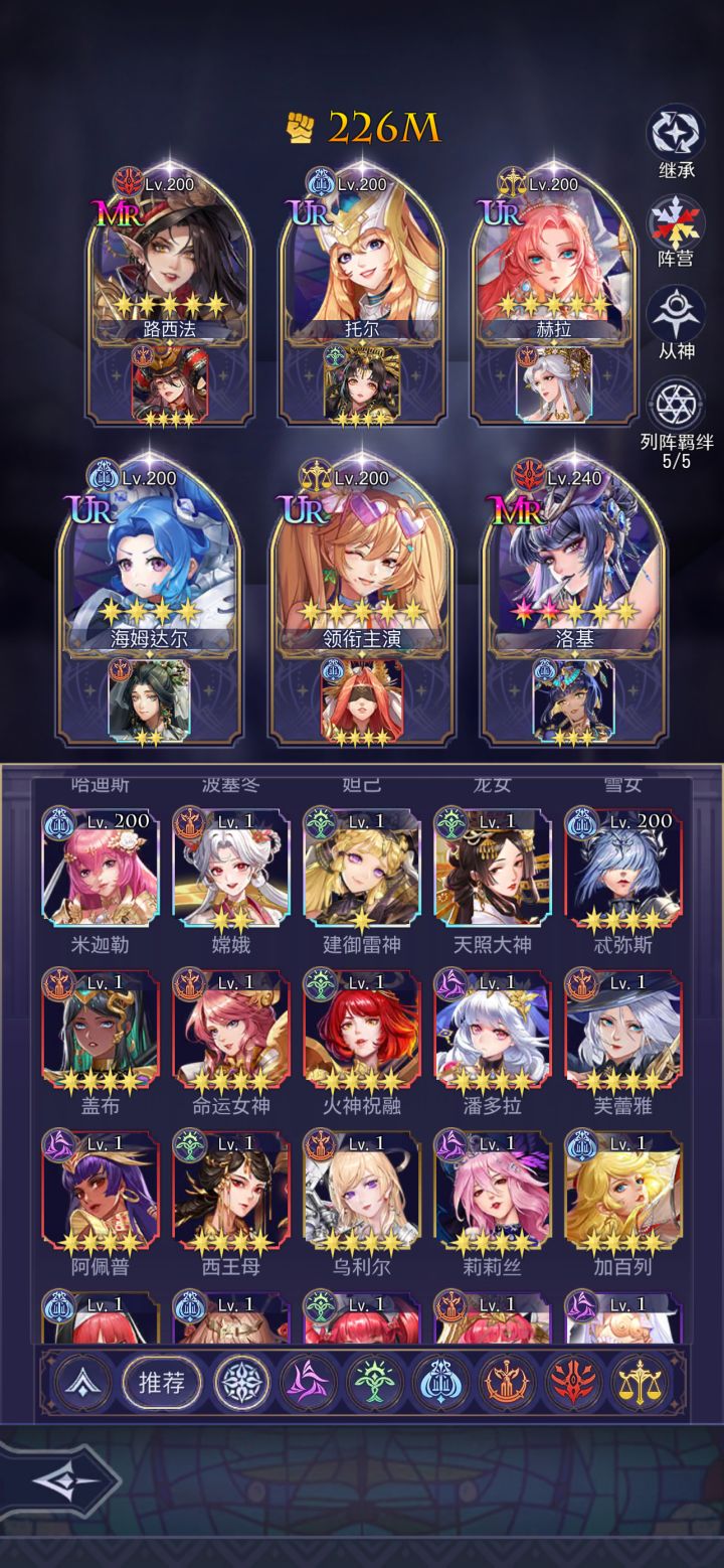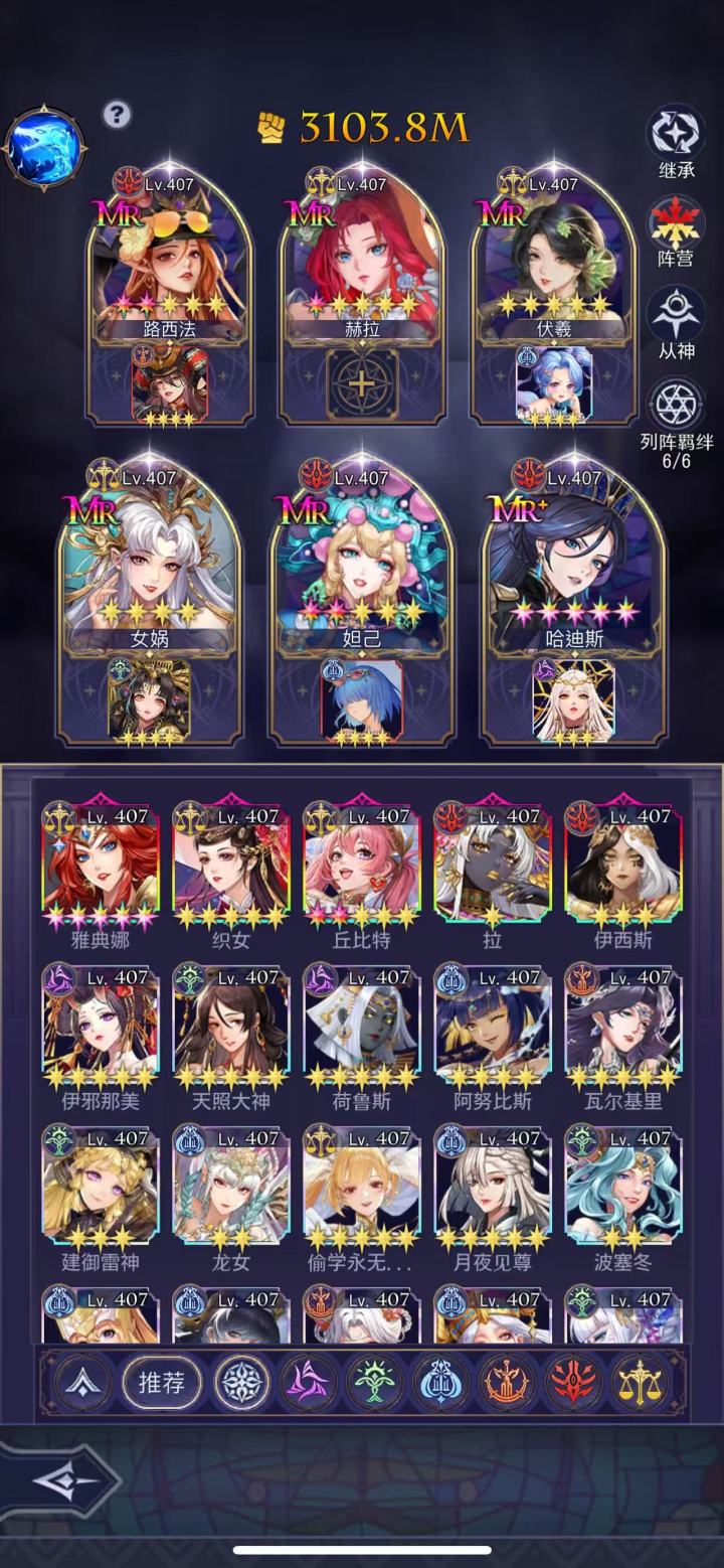本人偷学永无止境 上届天梯全服第一曾把三个号分别在50天,40天,20天内通关普通主线 我的主线攻略包括角色,从神,神器,装备进阶,圣器,宝石,符文,御灵,星图,命星以及灵活占位,预计800M通关首先注明以下攻略是哈迪斯通关攻略,可能通关效率不及伊西斯但哈迪斯在其他的场景全能,适合绝大多数非重氪玩家角色:路西法(万金油辅助) 赫拉(需氪金获取 替代品:主角) 伏羲(增伤辅助) 女娲(U
