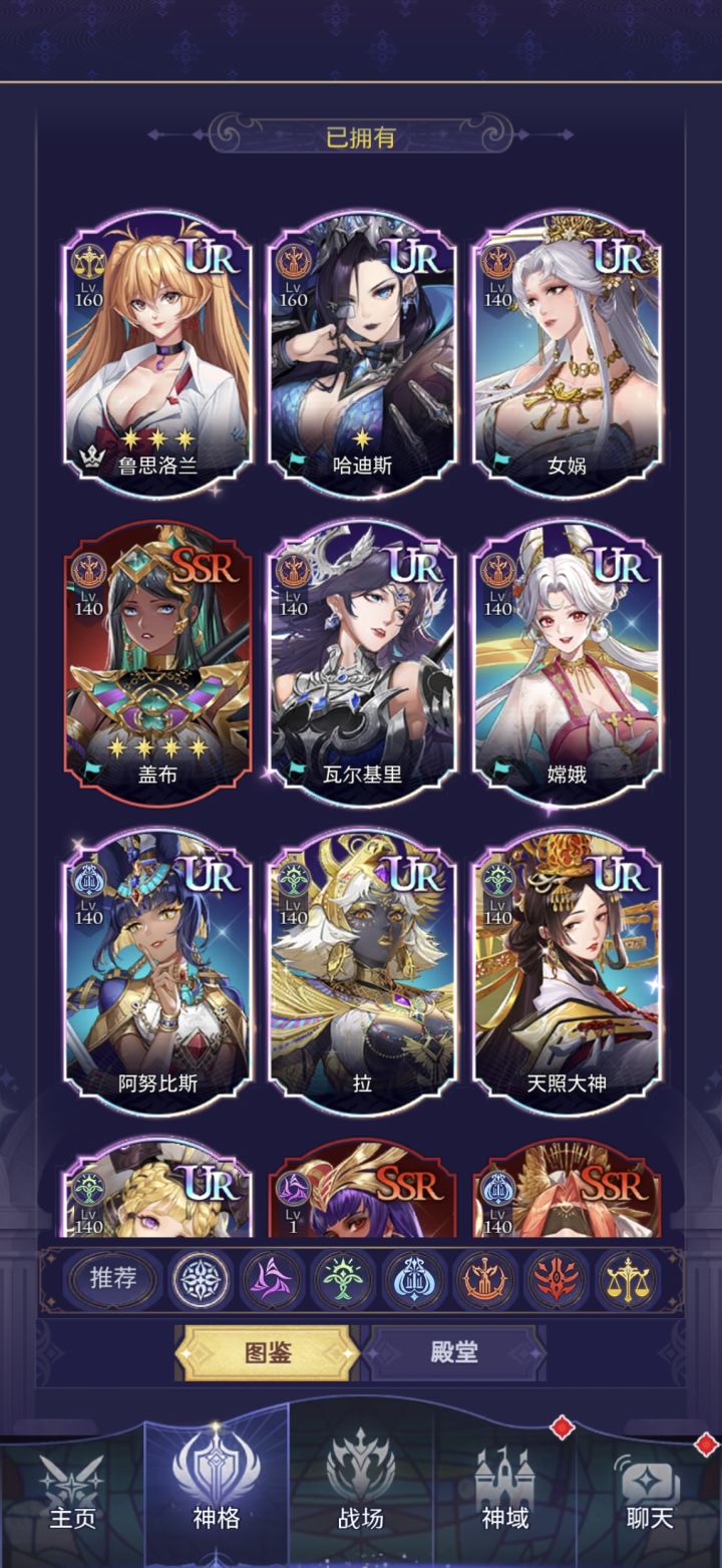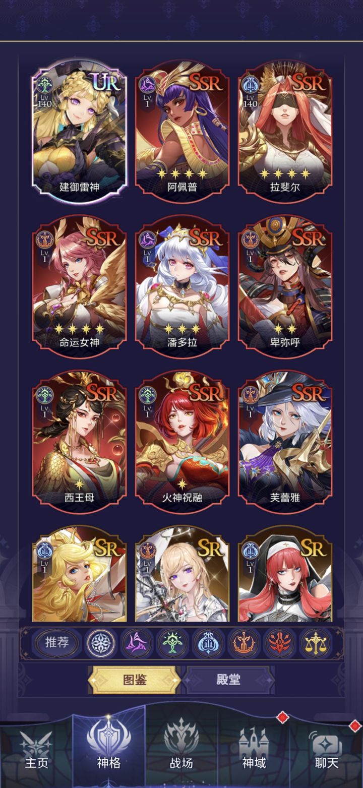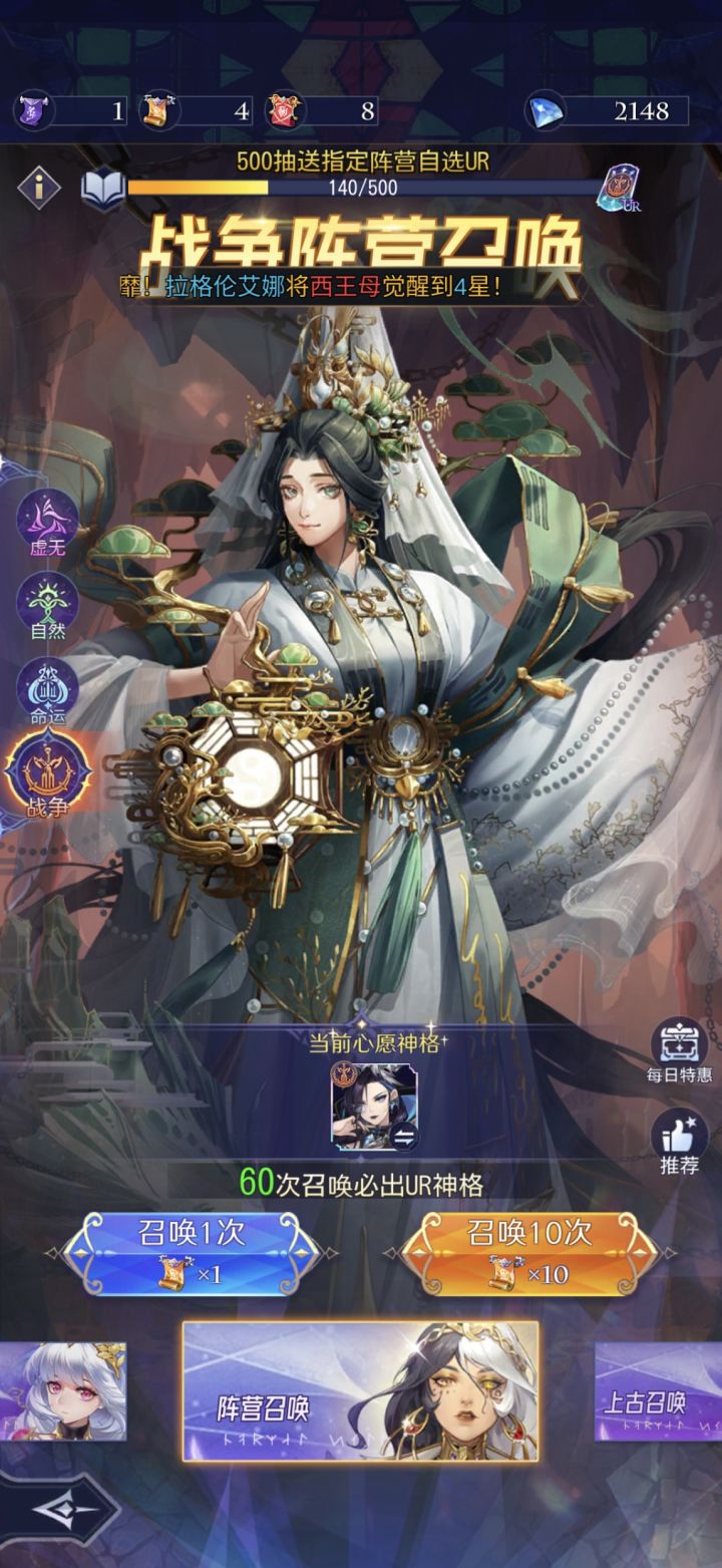不废话,直接主题,如果你不是重氪,那么你就需要一个开局号。首先赫拉,差点路西法,最次也要是个洛基,排名分先后。因切赫拉和路西法是唯二UR就是秩序/混乱的神格,也是最容易入手,白嫖就可以获得的强力女神!1.如何合理抽卡:这个游戏基本都是要保底才出UR极以上神格,所以如何分配抽卡就尤为重要了。这个游戏里有四种抽奖券,分别是上古召唤券,因为颜色是紫色,我简称他为紫票,可以抽随机抽各个阵营的女神,包括