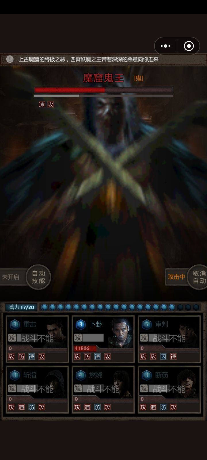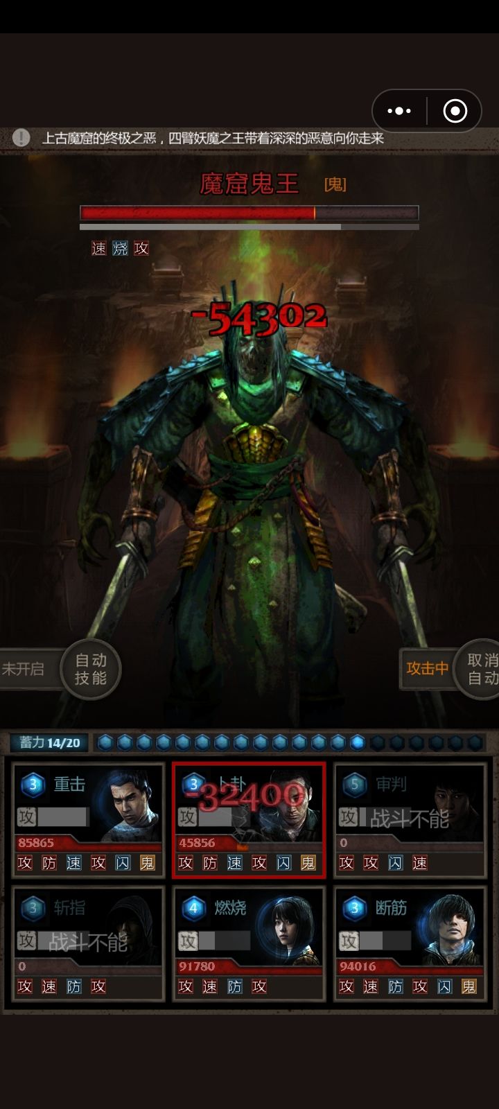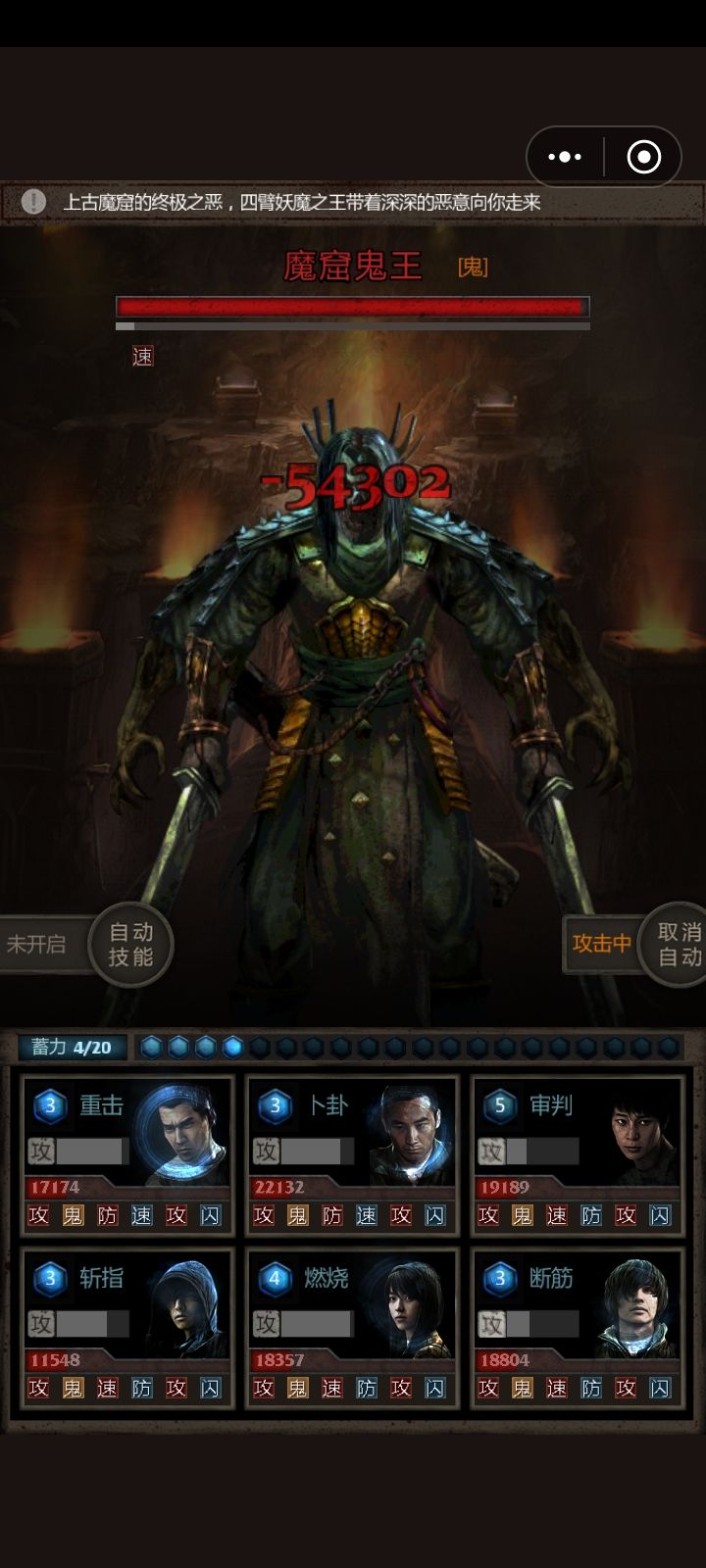刘安阵容,切记切记先把左右两侧祭坛干掉,不然要打九波(,,,)。带神器都6级,前3波能量满了就 杨 放技能,尽量多凑点能量,第4波不要一口气都放完龙的斩,一两个就行了,硬吃几波再复活就好了,用完能量打第5波打不了,会差一点才能打死!!!第5波刘安上来就斩斩斩,突出一个就是干,看他先打死我们,还是我们斩死他,基本上运气不差就能一口气打过(有条件打之前吃6个鬼丹),然后就过了!
