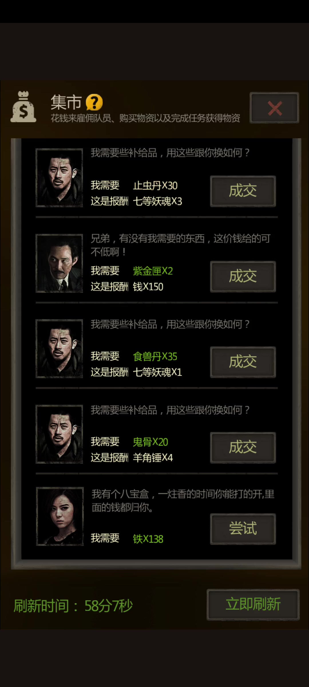 通过bug可以去掉老队长必须下墓的规则,步骤如下: 1.先把其他五个队员安置上去,把老队长放在最后一位 2.长按老队长,保持不动(右手食指按住) 3.长按想要替代老队长的队员,保持不动(左手大拇指按住) 4.长按下一步按钮,保持不动(右手大拇指) 5.先放开下一步按钮的手指(右手大拇指) 6.再放开老队长按钮的手指(右手食指) 7.最后放开替代队员按钮的手指(左手大拇指) 8.可以点击下墓了,如果