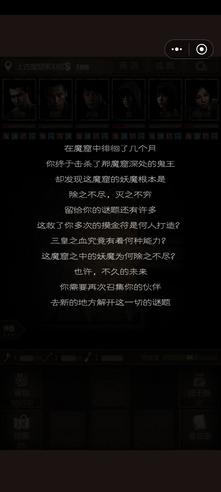 经过这两天反复的挑战,试了好几个阵容,终于打过了,感谢所有前辈分享成功的经验,2026祝所有的兄弟姐妹新年快乐!事事如意!最后也给各位后来者分享一下我打鬼王的阵容(猪脚,胡东,卢吉,龙,九妹,微丽杨)神器(五岳,镇鬼,律鬼)丹药(金钢散,乱鬼丹,律鬼丹,霸命丹)没啥技术可言,不需要换技能,就是九妹放火烧,然后奶妈无限奶就过了,非常懒人!