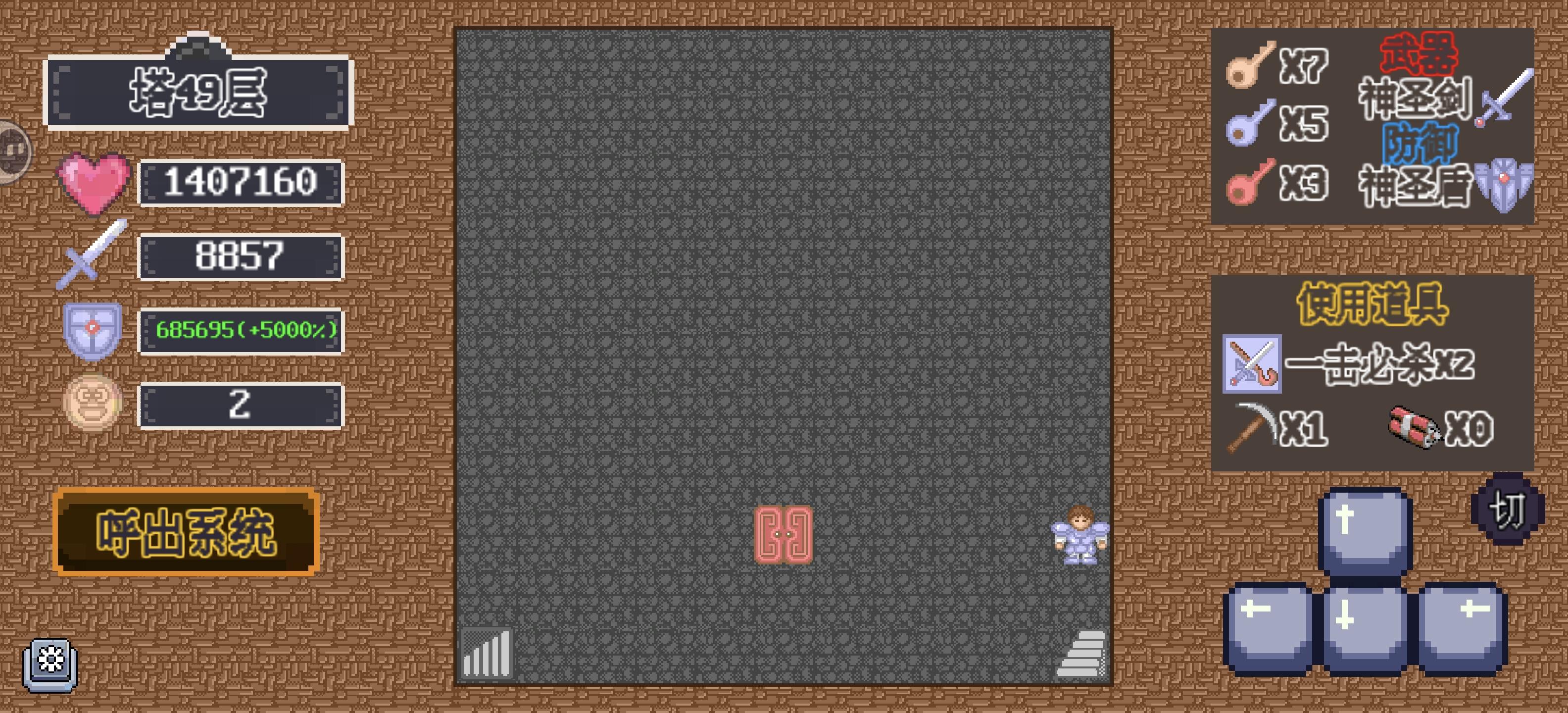 开局路线:1楼直接杀到3楼,到系统商店购买4金币的一击必杀道具,直接斩杀大蝙蝠。一直杀上5楼,拾取铁剑。回到4层把左下屋子的钥匙拿了,回到六楼开所有的黄色门,避开高伤怪物,同时优先去清理带有宝石的屋子里怪物。七层系统商店购买一击必杀,直接杀掉巫师,直接达到9楼,系统商店购买稿子,破墙拾取铁盾。从这开始清前10层的怪物(建议如果金币达到88金币 建议优先解锁怪物图鉴),如果遇到伤害高的怪物