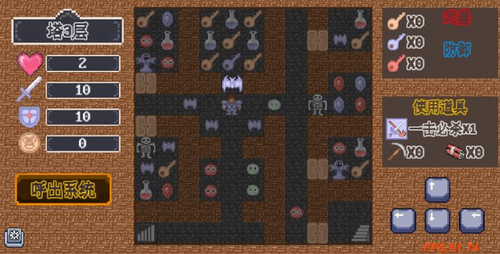 开局路线:1楼直接杀到3楼,到系统商店购买4金币的一击必杀道具,直接斩杀大蝙蝠。一直杀上5楼,拾取铁剑。回到4层把左下屋子的钥匙拿了,回到六楼开所有的黄色门,避开高伤怪物,同时优先去清理带有宝石的屋子里怪物。七层系统商店购买一击必杀,直接杀掉巫师,直接达到9楼,系统商店购买稿子,破墙拾取铁盾。从这开始清前10层的怪物(建议如果金币达到88金币 建议优先解锁怪物图鉴),如果遇到伤害高的怪物
