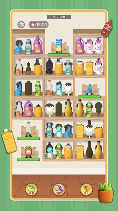 将货柜的物品全部清除 将相同的东西放到一起即可消除