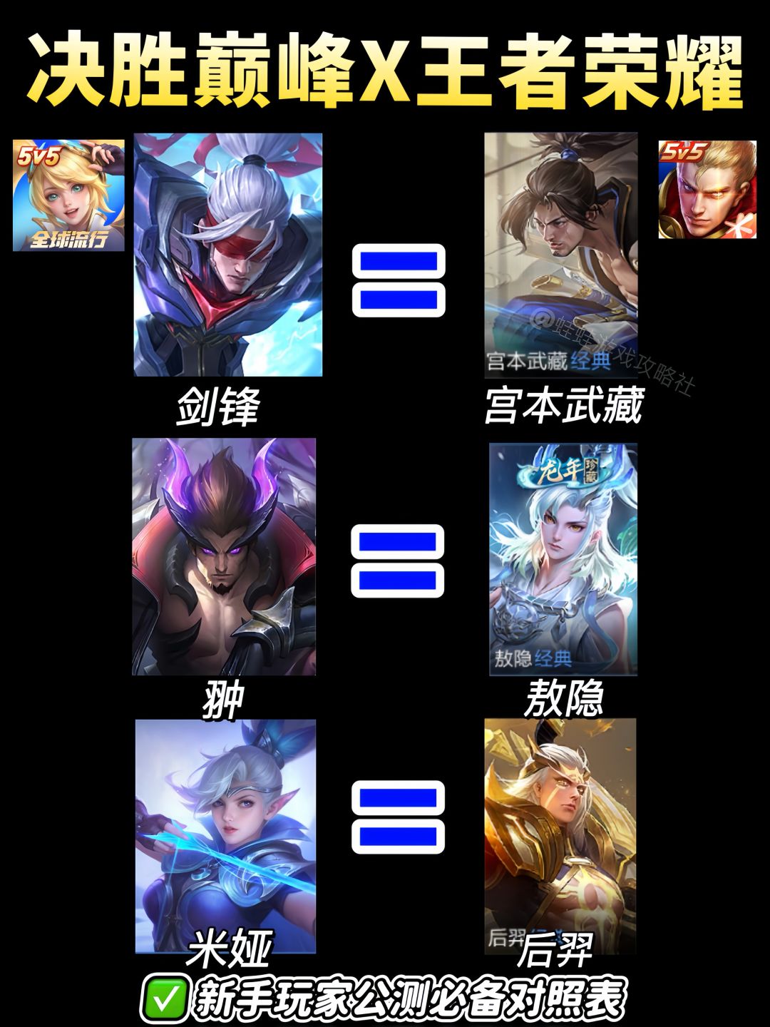决胜巅峰X王者荣耀热门英雄对照表