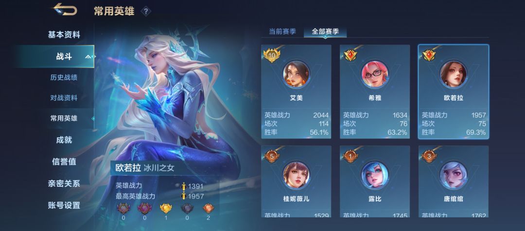 冰女欧若拉 强度:适中 上手难度:简单 自带复活甲的团控大法师,但二技能冻不了近处敌人真是天才策划[表情_吐舌头] #决胜巅峰