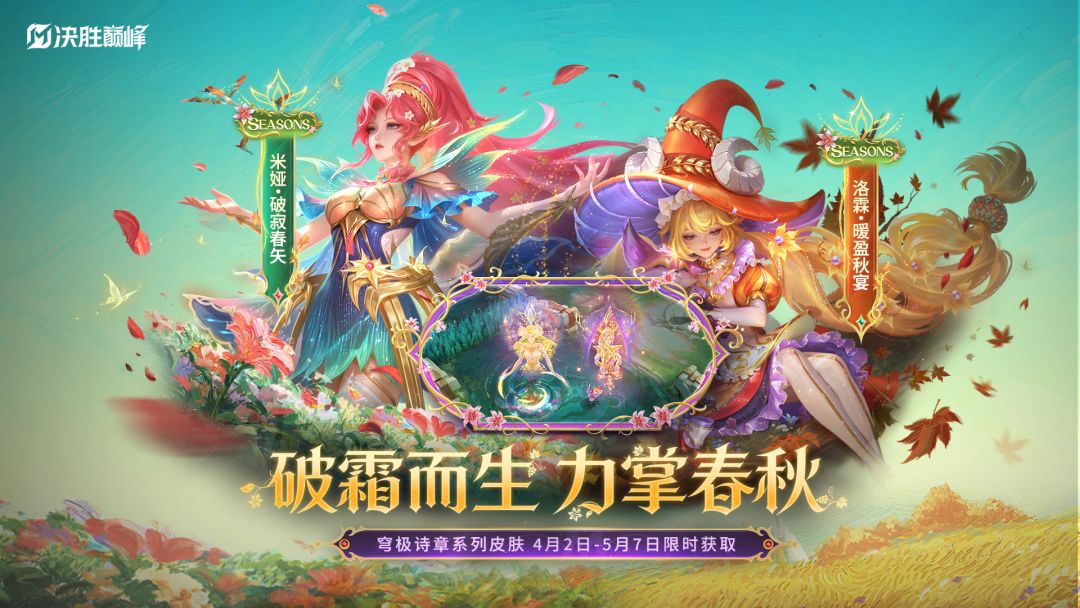 4月2日,「米娅·破寂春矢」和「洛霖·暖盈秋宴」正式上线,参与「穹极诗章」活动即可获取! *展示视频为测试版本,以实际上线效果为准 —— 欢迎来到黎明大陆!—— ▼《决胜巅峰:此刻共振》S6新赛季现已开启! 新英雄「薯片」现已登场,131位英雄全部上线,变形金刚联动限时返场!「穹极诗章」系列皮肤4月2日上线!更多赛季内容及福利爆料敬请期待!关注小决,切勿错过~