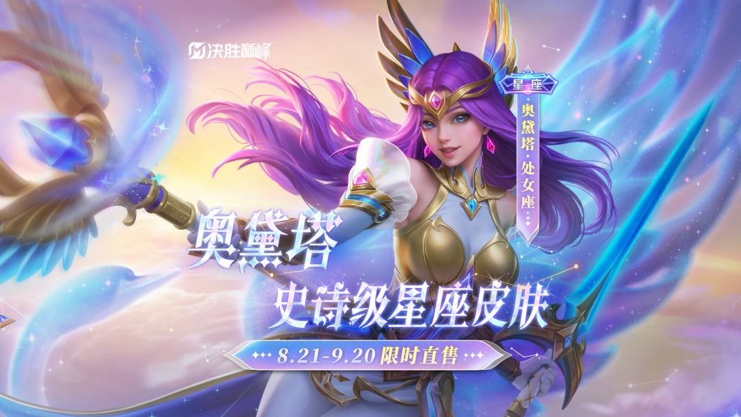 用善良编织星座,以纯真点亮银河, 你眼中的星子,蕴藏着宇宙的深情。 8月21日-9月24日,奥黛塔全新星座主题史诗皮肤「处女座」将限时上架【商城】,售价880钻石,首周享限时7折优惠!喜欢「奥黛塔」的友友们千万不要错过啦~ *展示内容为测试版本,以实际上线为准 《决胜巅峰:荣耀亚洲》8月全新版本「巅峰竞技场」开启!戳下方立即下载,巅峰英雄、巅峰联动、巅峰皮肤、巅峰对决乐趣无穷。臻品皮肤周周送,惊喜