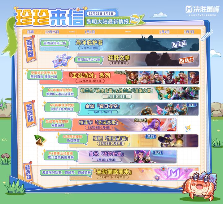M7世界总决赛活动通行证2026年1月1日正式上线,全新M7赛事限定皮肤 格兰杰「破夜寂雷」,激活M7通行证豪华版或珍藏版后即可获取~ —— 欢迎来到黎明大陆!—— ▼《决胜巅峰:乘云直上》S5新赛季将于12月18日开启! M7世界总决赛活动即将开启!更多赛季内容及福利爆料敬请期待!关注娜娜,切勿错过~