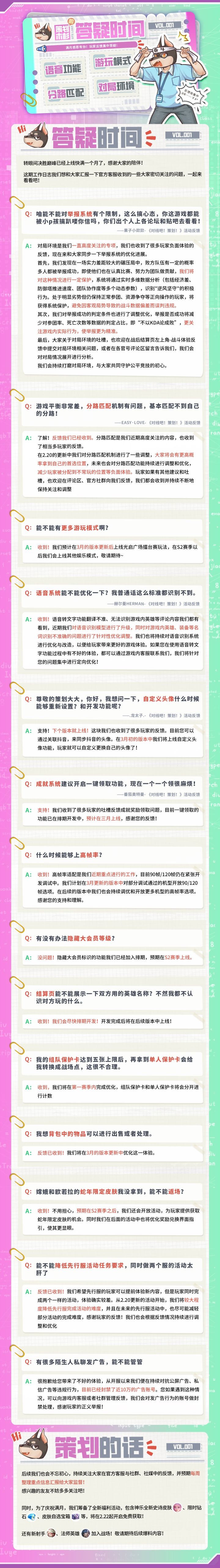 锵锵,现在是——策划木杉的答疑时间!感谢大家的支持与陪伴!距决胜巅峰上线马上就要满一个月啦!娜娜特意邀请到了战斗策划木杉,对友友们近期关心的问题进行集中解答,快和娜娜一起来看看吧~友友们如有对游戏的任何意见或建议,也都可以在评论区留言哦!