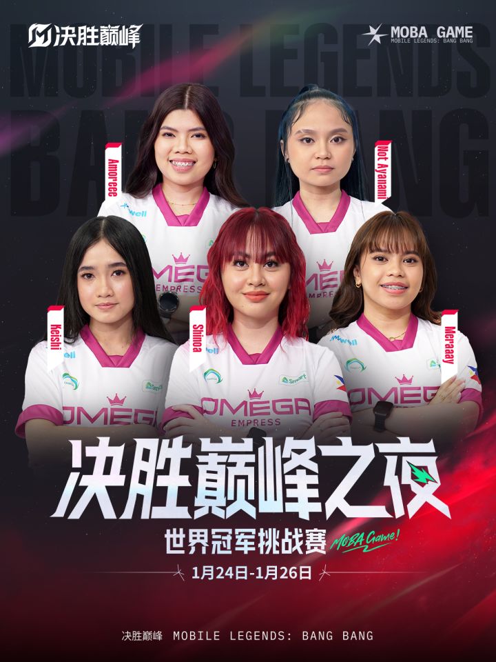 热血重启,战火将燃!M6世界总决赛冠军ONIC PH和以电竞世界杯女子项目MWI冠军OMGE,双冠齐聚决胜巅峰之夜,他们将把攀登巅峰的热血与激情带给中国赛区的观众们!1月24-26日,决胜巅峰之夜,豪华阵容,不容错过!