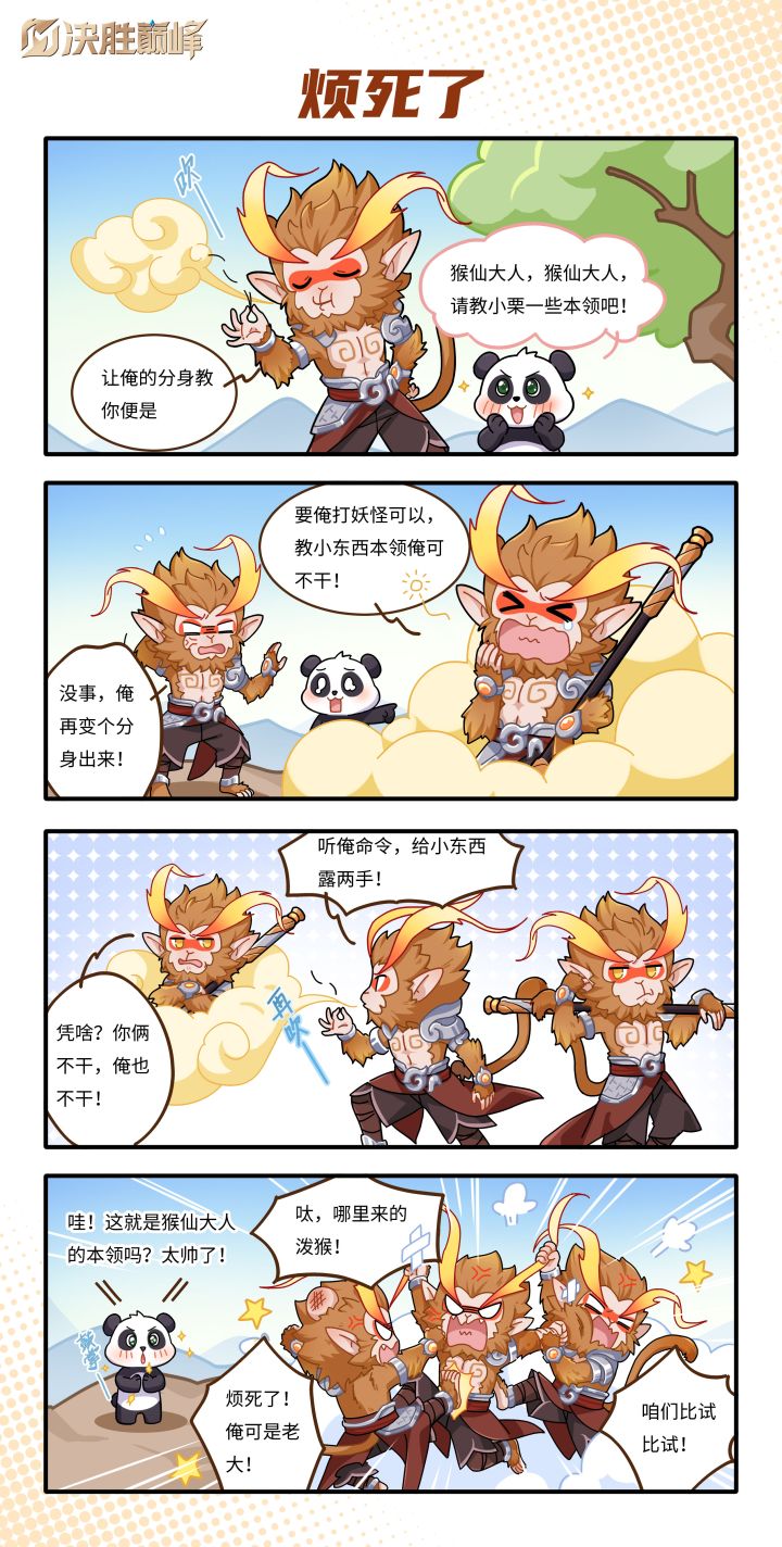 梦中的悟空,似乎又回到了那处熟悉的山头。在那里,瀑布飞溅、满山花果。一个幼小的熊猫人,轻声唤着他,从山林奔来。娜娜前来为友友们奉上「悟空」Q版漫画,一起看看“猴仙大人”和熊猫人小栗之间的趣事吧~战士英雄「悟空」1月28日正式上线!1月23日-1月28日,完成「锦衣狐裘」活动任务获得[集运助力结]参与全服助力,即可免费领取新英雄「悟空」!