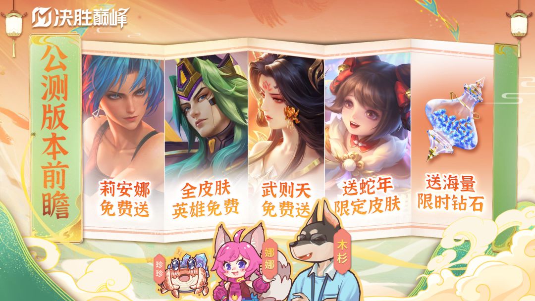 金玉满堂迎新春,喜迎新岁礼不停。还有2天,决胜巅峰就要正式公测上线啦!(打断施法——)娜娜知道你很急,但娜娜比友友们更急!毕竟——还有超超超超多重磅福利等着送给友友!娜娜小课堂开课给大家划 重 点啦~速戳视频,抢先get公测福利内容!