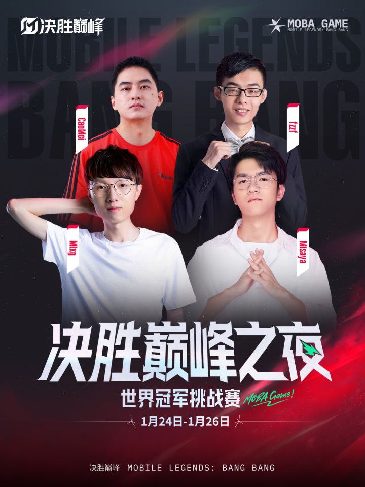 2025决胜巅峰之夜「世界冠军挑战赛」即将开战,跨界助阵阵容震撼来袭!他们是为中国赛区崛起披荆斩棘、立下赫赫战功的传奇选手mlxg、若风、草莓、卷毛。此次跨界挑战,他们又将带来怎样的精彩操作呢?1月24日-26日,我们一起同度决胜巅峰之夜!