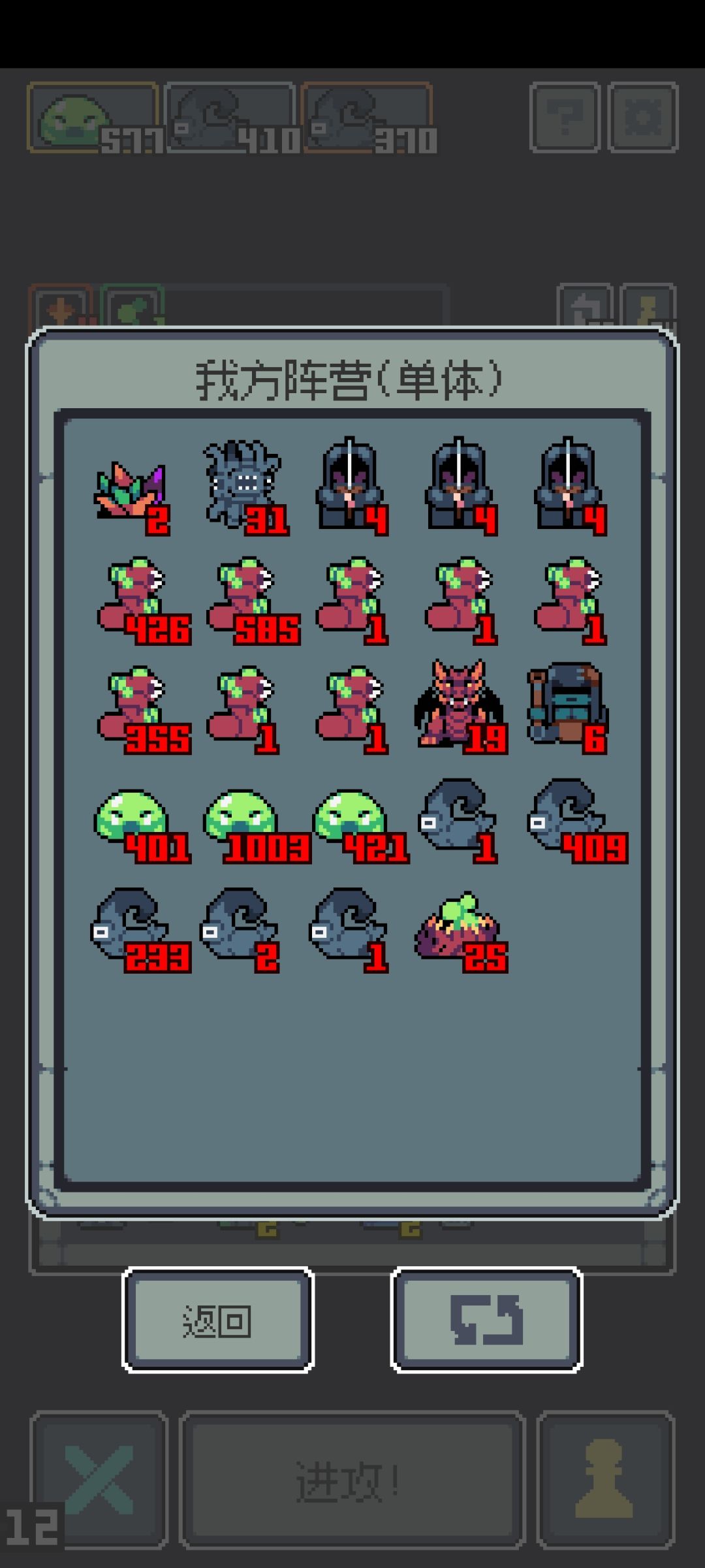 秒天秒地秒空气 成型简单易懂,前两回合留着刷新去刷道具不灭王冠,后面留着刷新去刷道具羊皮纸,不要去拿太阳战斧(切记!),然后有触手拿触手,没有触手就拿可以自己消除的角色。等一个黑山羊出来就原地起飞,前期控一下触手数量,保持在3到4个,可以快速把攻击力叠起来,后期无所谓了一直跳过就可以。最后用触手养出来一个史莱姆王玩玩吧