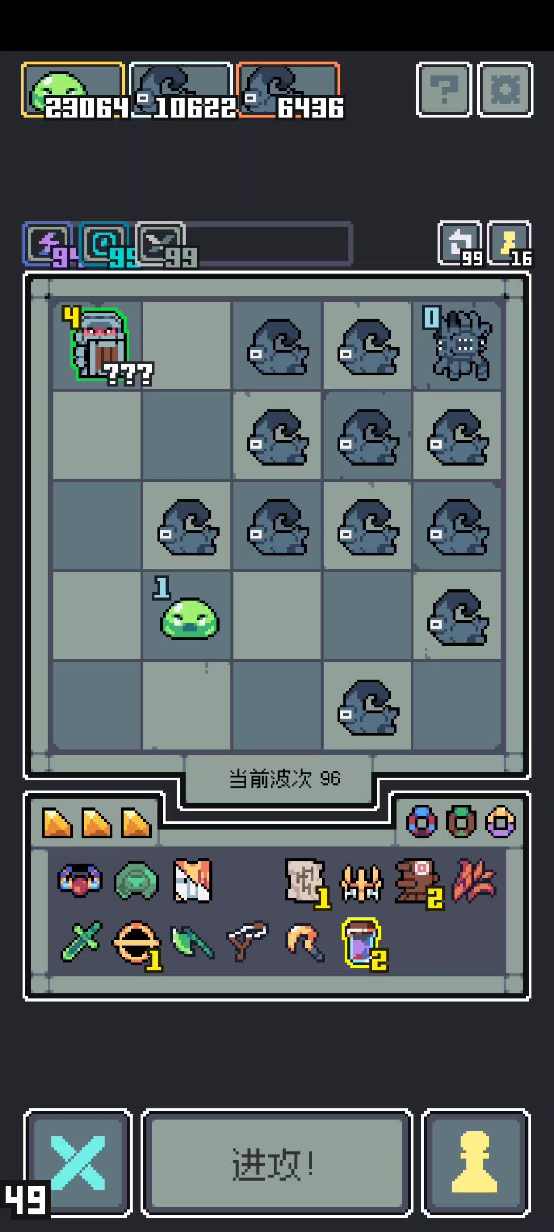 带个双数回合刷财宝减少刷新次数的戒指。 前期可以用史莱姆过度,双数刷魔力拌饭,看出不出黑山羊不出就快速退出手机桌面结束游戏程序重进。这样直到刷到黑山羊。后面就是拿,神秘羊皮纸和不灭王冠,有不灭王冠后就可以把前面的史莱姆清除了把攻击力传给触手。后面拿太阳能战斧就无敌了!
