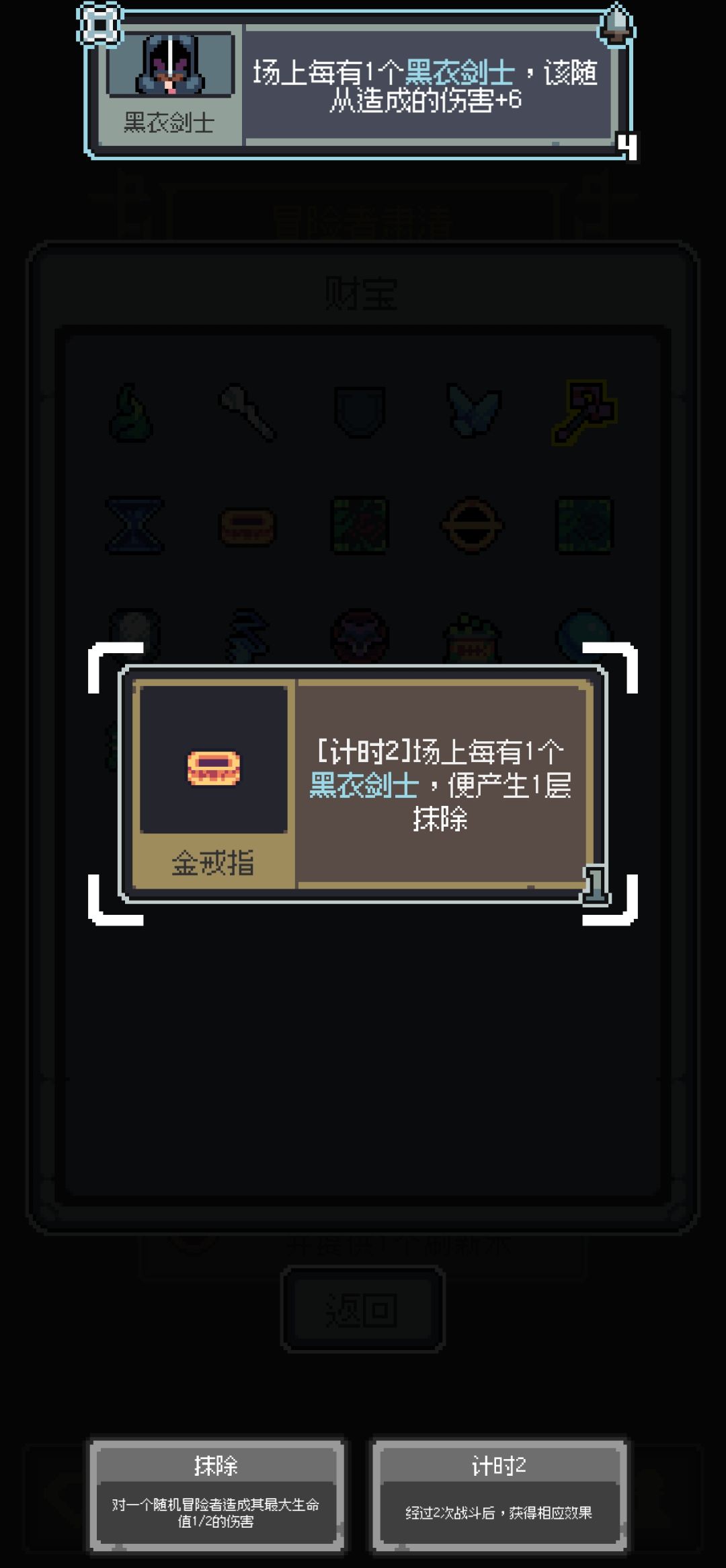 如题,黑衣剑士只是金戒指的工具人,刷抹除用的,核心是异星人效果可以叠加,即,N 个异星人可以使抹除触发额外 N 次,且这个 N 次可以作用在同一目标上。 即,一号异星人触发的两次,与二号异星人触发的两次是独立计算目标的。而抹除的效果是强制减半血。 如果再配合禁书,可极快速压低血量斩杀,一般两三回合就斩了,速度快慢取决于异星人有多少。 前中期只需要注意多留一些能提升刷新的就完事了,注意刷新加加速,快