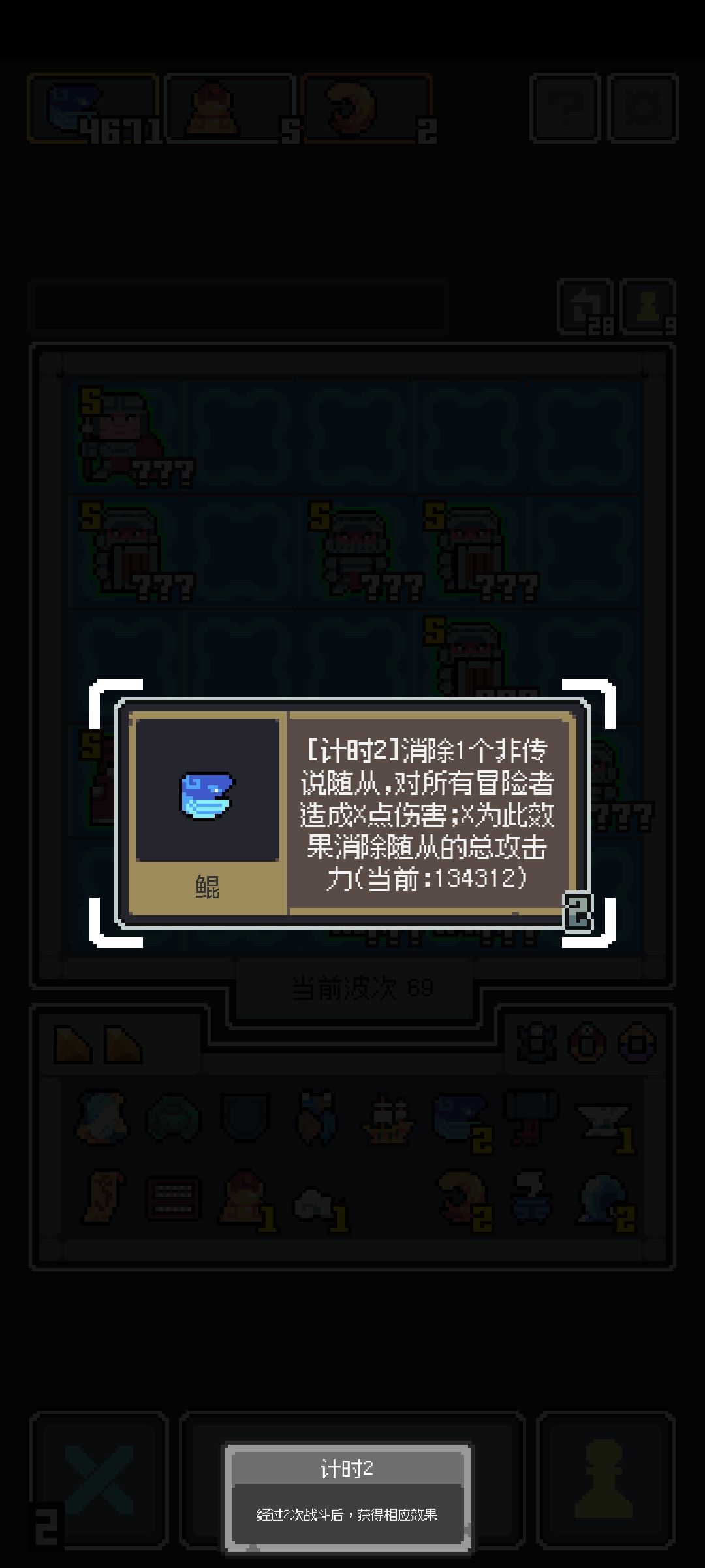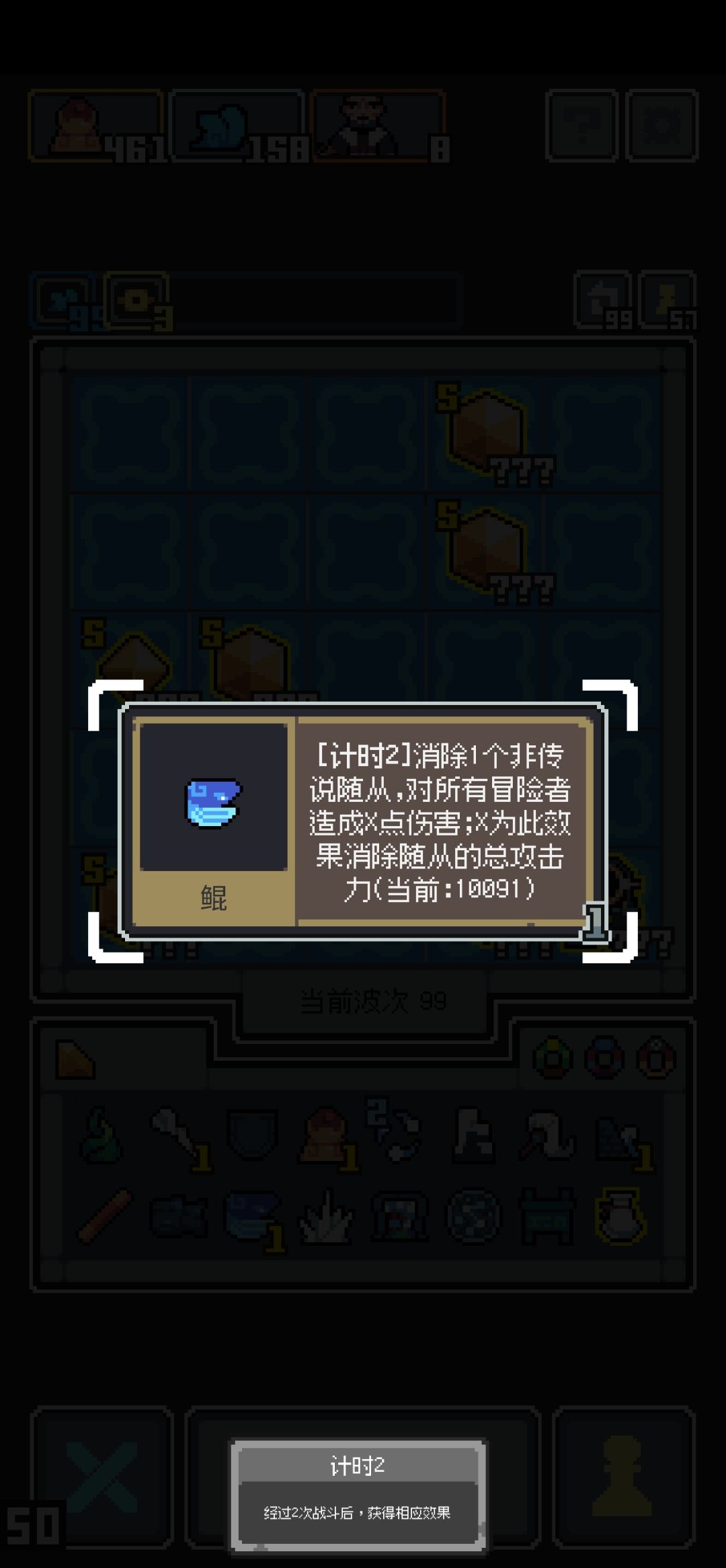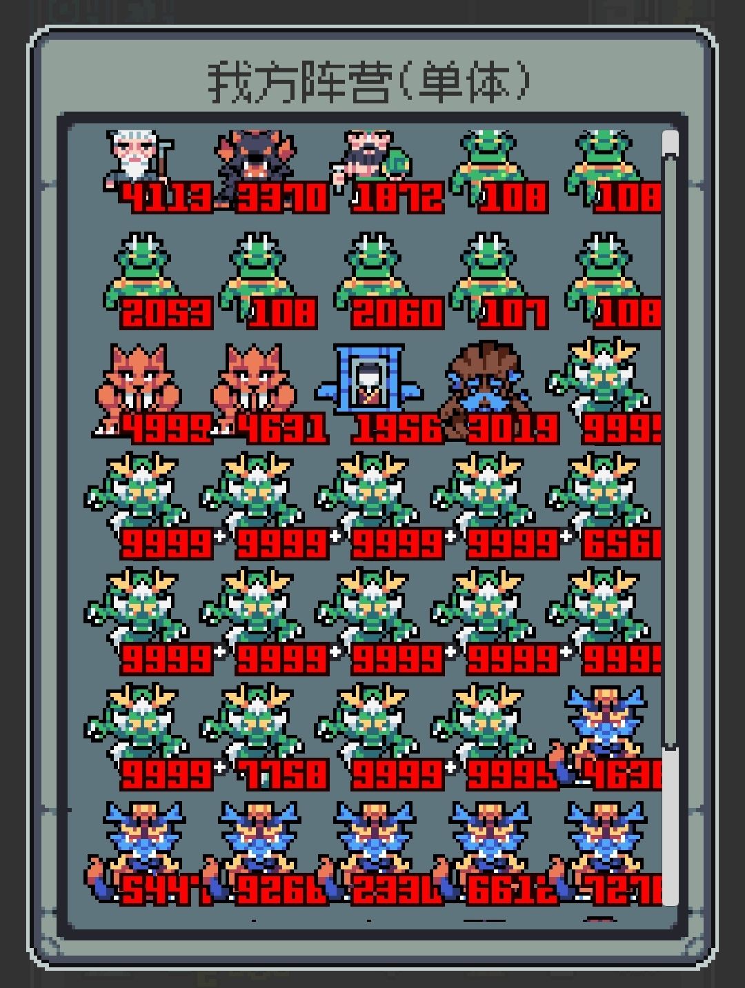 差不多40的时候就14只猴哥,我还想上去给他刷攻击已经刷不了了,开局就秒杀所有敌人,直接开始下一轮,完全无法对后面增加的13只猴弟进行进化,上场就是13-14只猴哥和敌人,没有一点空位,然后清场,后面13只猴弟还有一堆别的东西在仓库坐牢。 说下玩法,开局随便弄点啥,种多两个消除花,后续清场用的,早点把地图海铺起来,14轮前把宝船弄到手就行,然后开始养史诗,记得千万别选到传奇(传奇除了猴弟都别选),