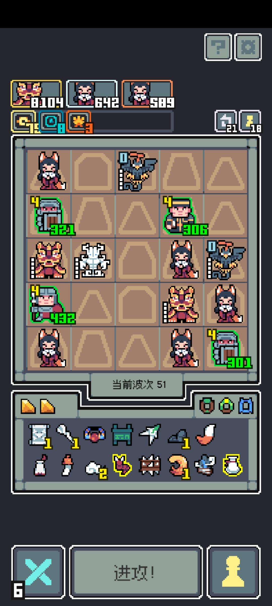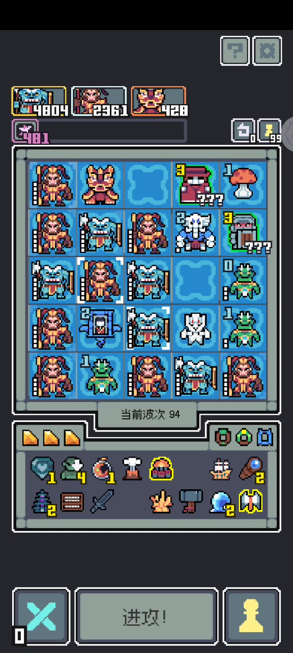 80层以后,场上格子数量就有点不够用了,以及开始验收成果。先把之前辅助打伤害的财宝替换掉,然后一个个逐渐移除镜中鬼;并增加玄蜂和狮子数量,找到一个合适比例。精英层和BOSS层都试了只靠着玄蜂也有可能FTK。