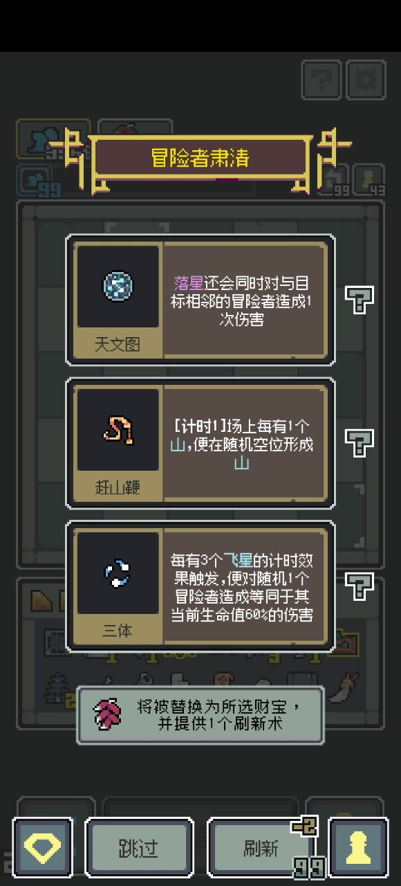 如图,19层就成型,后面同样挂机应该能通关吧。优点机制杀,只需要凑齐一秘宝和公式=n瓶中小人+2全知之妖(下位替代疯诗人)。随时可结阵转型,没有任何其他依赖性。 此处略去100字,后续我注意下克制怪,补充过来。 问哪来的这么多瓶中小人?那个一次性招募三个相同随从的,然后刷新99次一定能刷新出来。如果没出SL再来99次。 因为一不小心把惊骇也叠到99了,顺带把这个财宝圣母的眼泪也选了吧。(不知