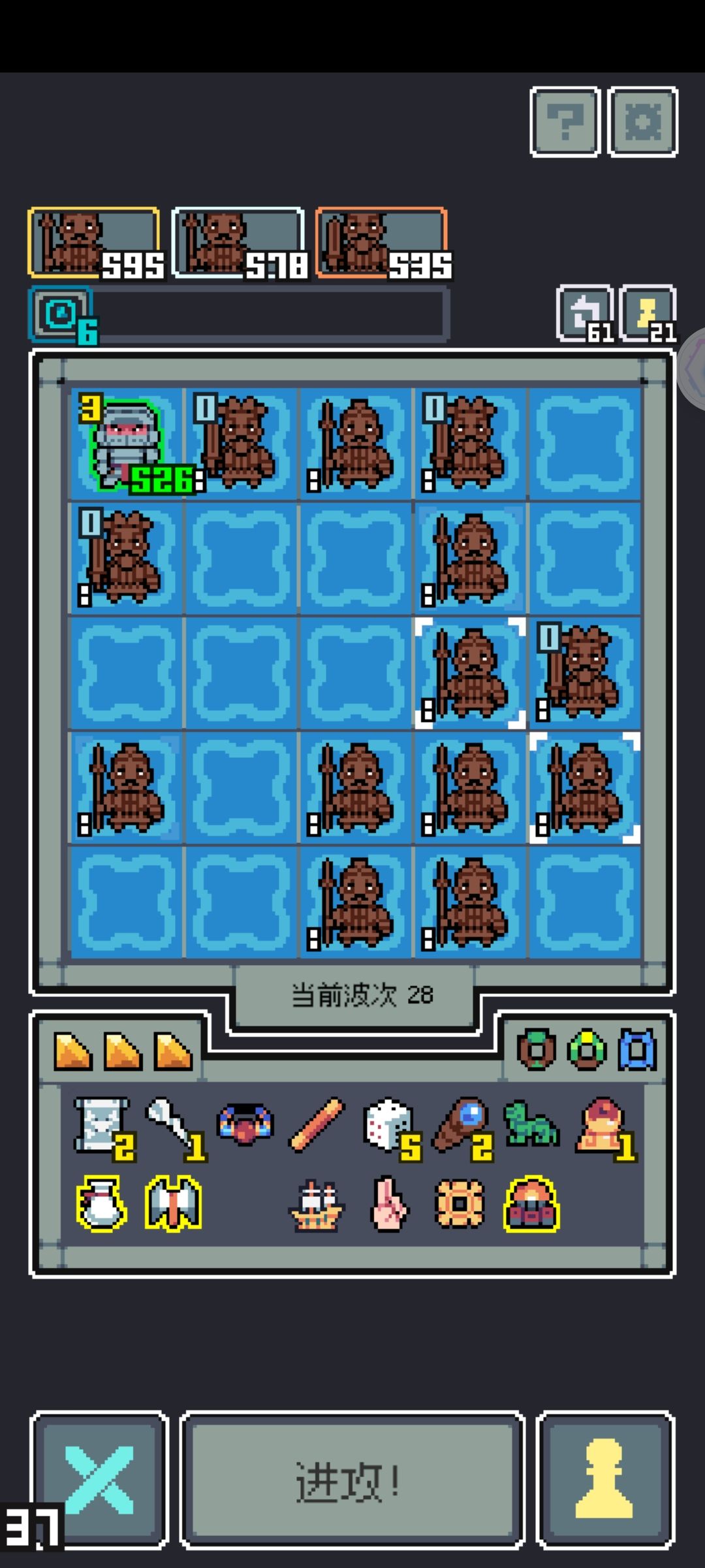 不知道就这样挂机能不能通关。兵俑/将俑取的是9/5比例。再加上恶心人的三个神圣魔像,BOSS层应该也不至于卡手吧。 备注:没打算再拿其他随从或其他输出,因为太简单了。比如方天画戟先把全部属性聚集到一个紫卡然后移除释放就行。