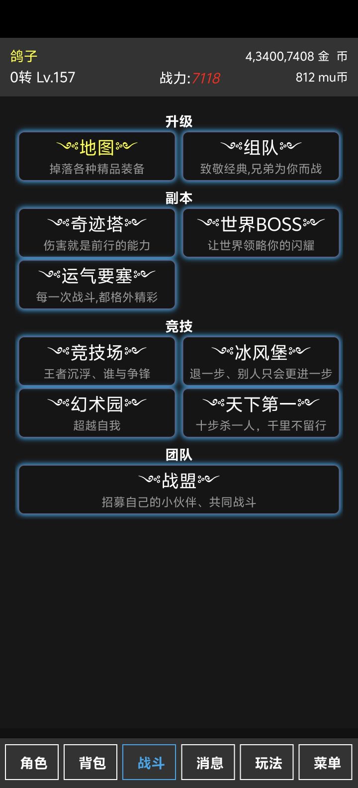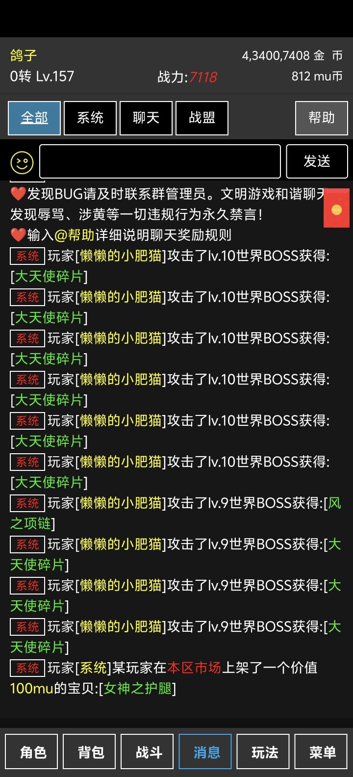 个人体验:时空之翼作为一款不到50m的文字挂机奇迹,却拥有挂机升级、爆装打宝、自由交易、竞技pk、世界boos、聊天组队、罗兰攻城、无限爬塔等丰富的游戏内容,让前中后期都有新鲜的玩法体验,可以说是麻雀虽小五脏俱全了。无论你是追求完美神装的大佬或是休闲挂机的散人,都能在游戏里找到一席之地。游戏基本内容介绍:挂机是游戏的核心,是获取装备,经验,材料的主要途径。其中分为普通地图,打宝地图和战盟地图